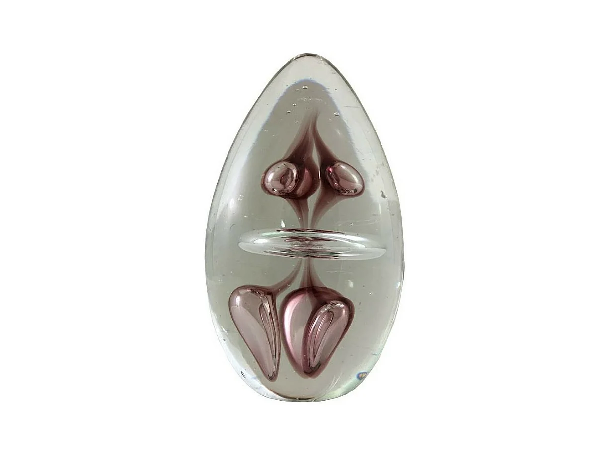 Presse papier sulfure "Gouttes" en verre mauve 9.5 x 6 cm