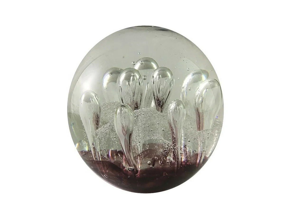 Presse papier sulfure "Gouttes" en verre mauve Ø.9.5 cm