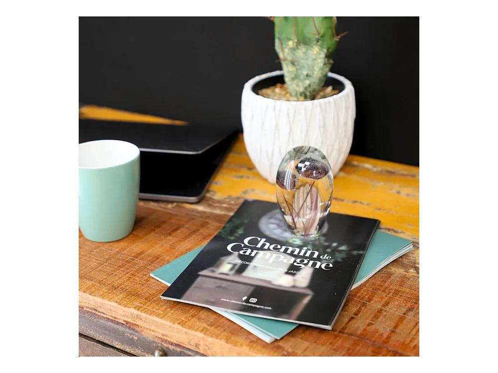 Presse papier sulfure "Flammes" en verre mauve Ø.8 cm