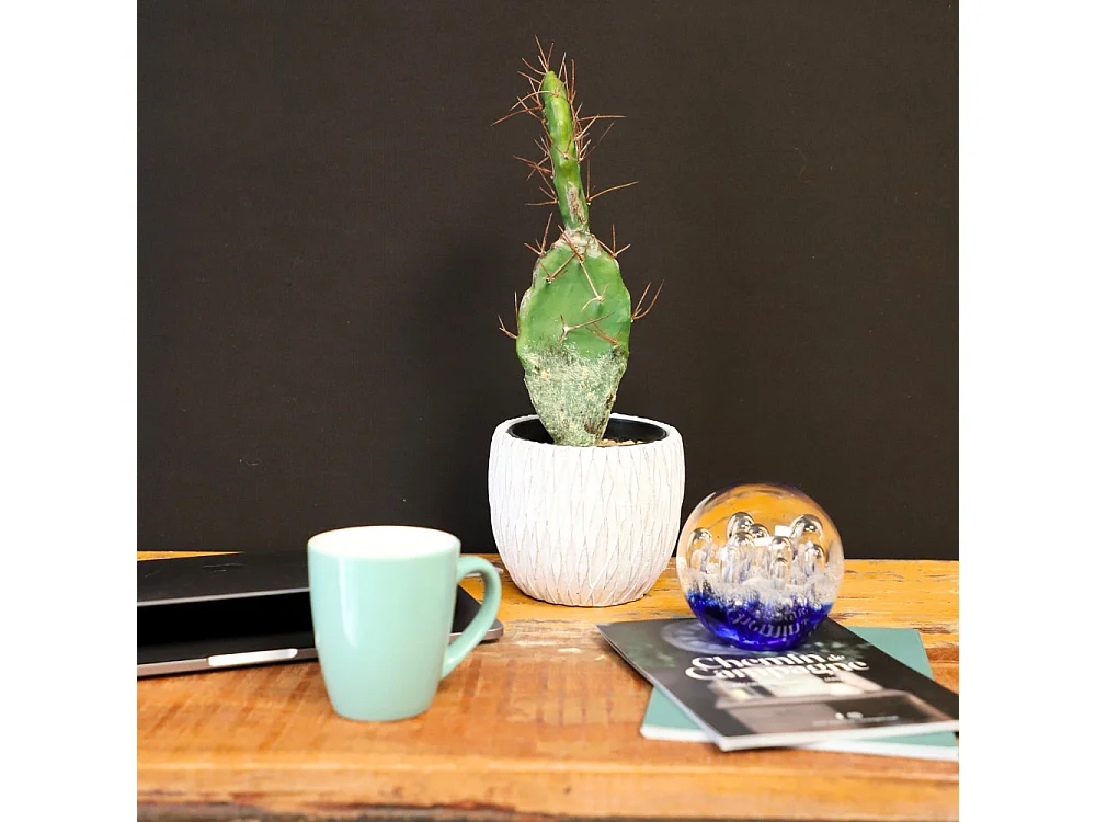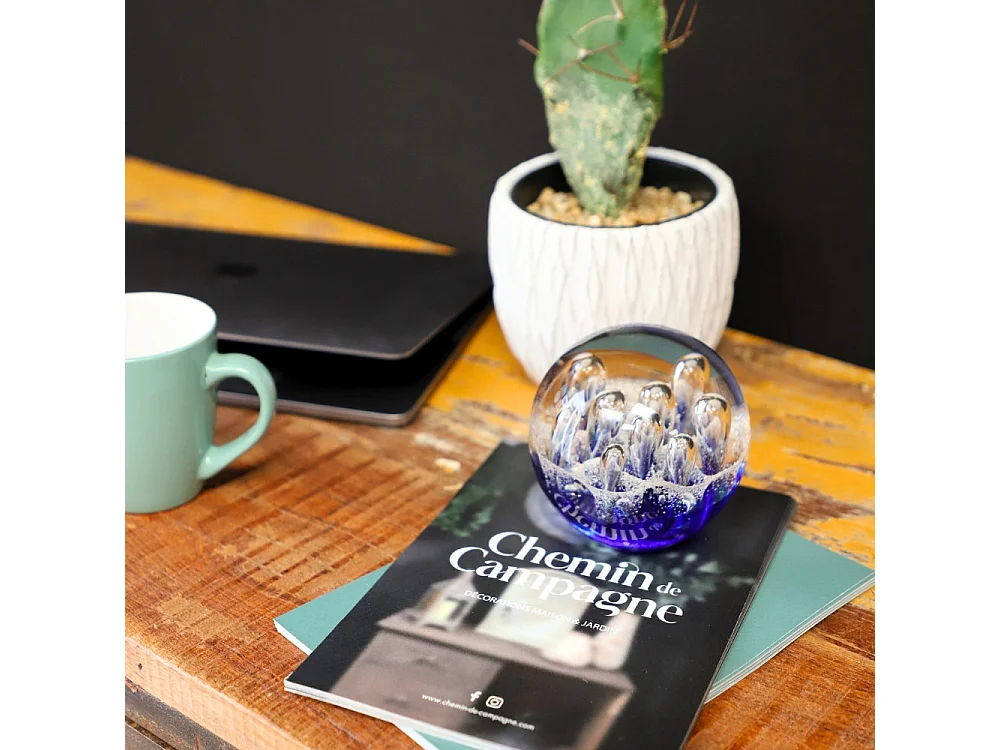 Presse papier sulfure Bulles en verre bleu 14 x 8.5 cm