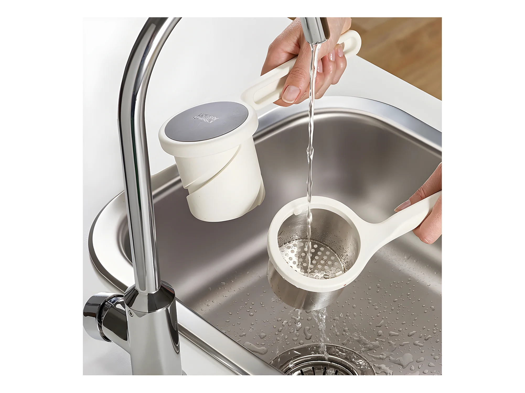 Ensemble presse purée et éplucheur gris en bois de hêtre