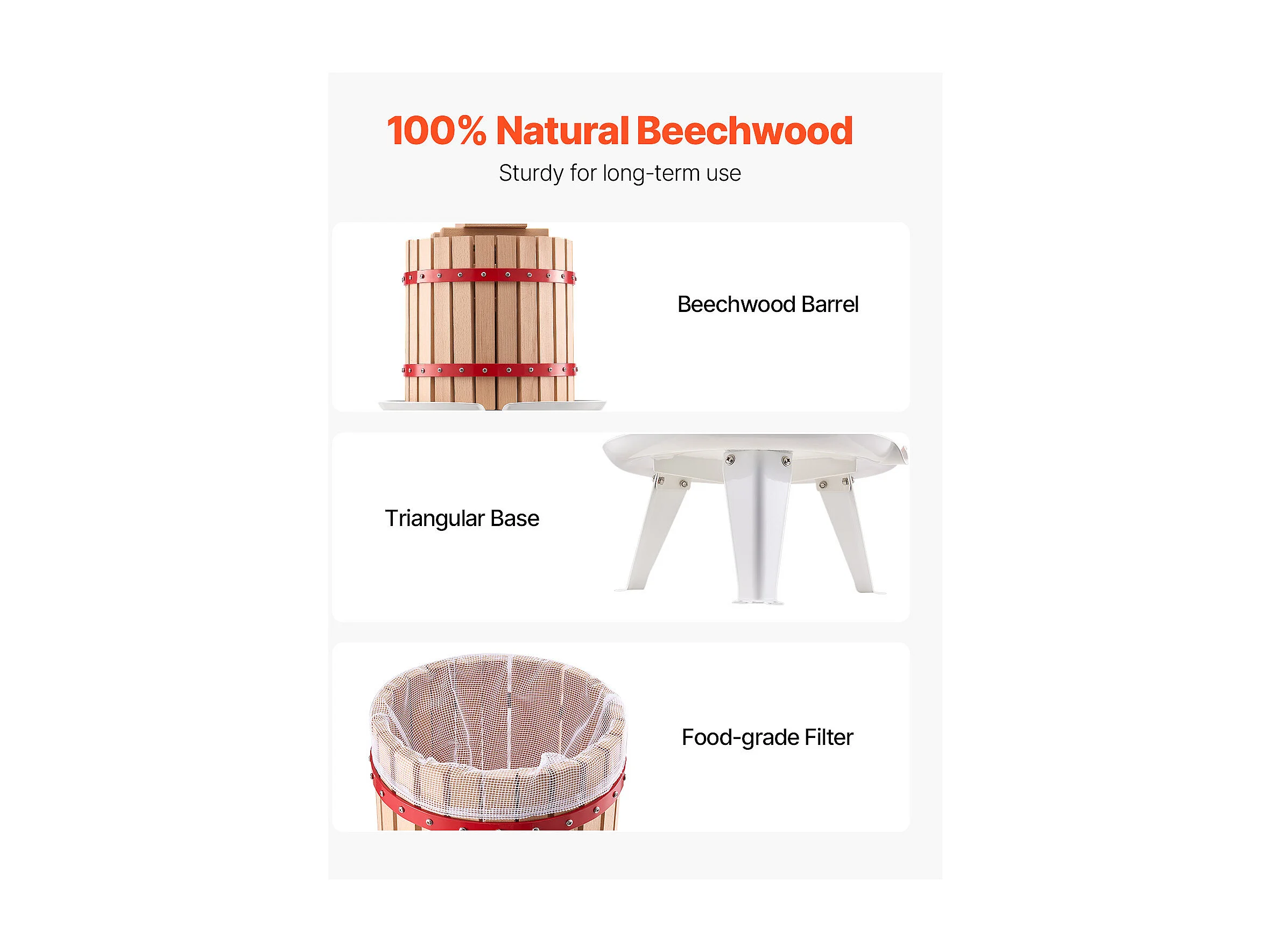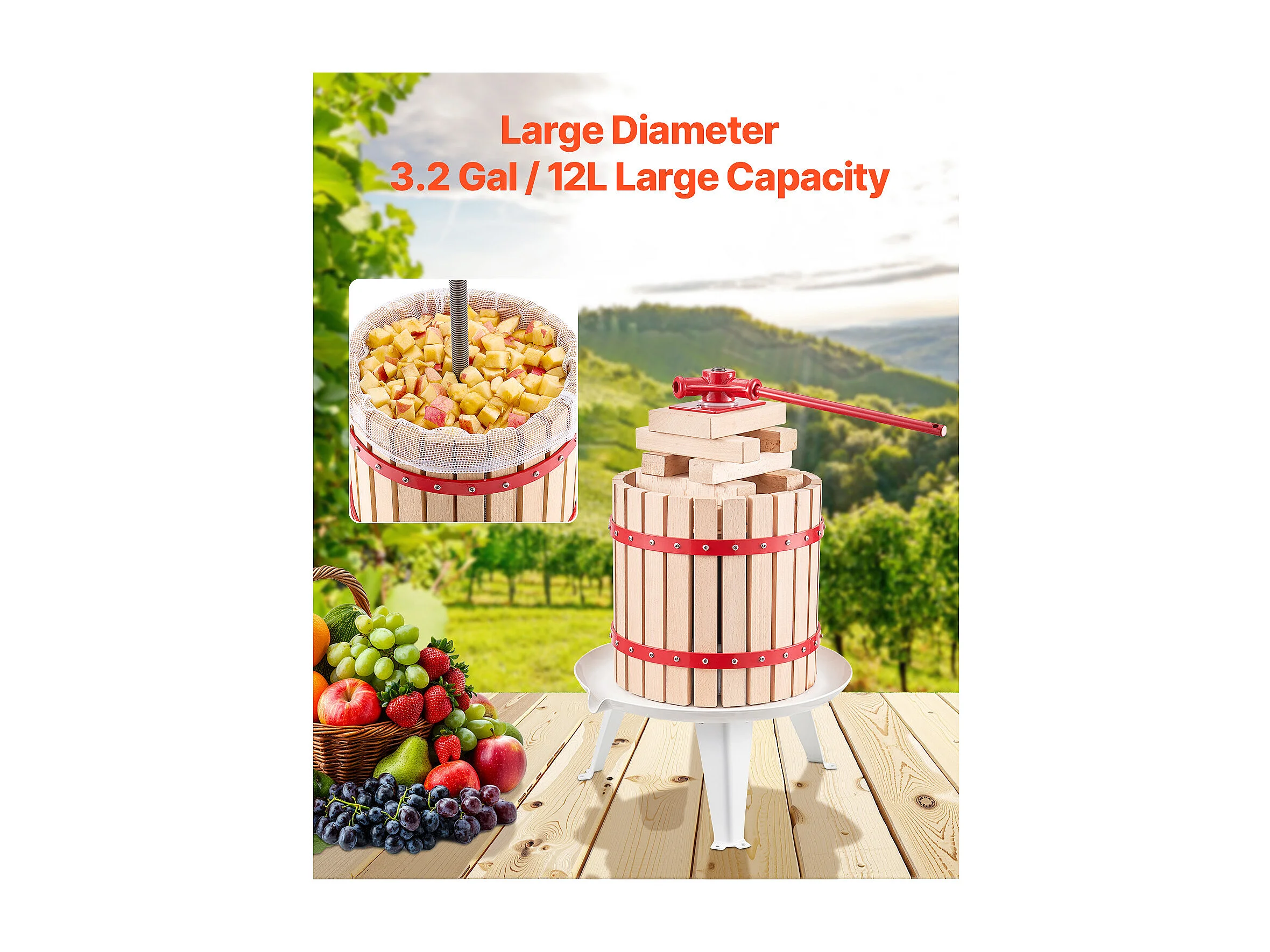Pressoir à Fruits Manuel SucceBuy, 12 L Panier en Bois, pour la Fabrication du Vin