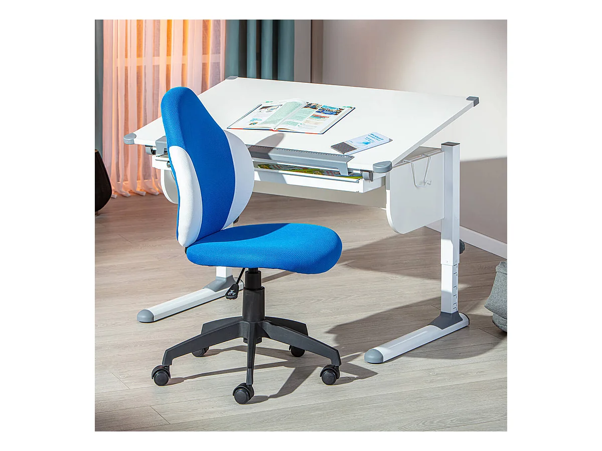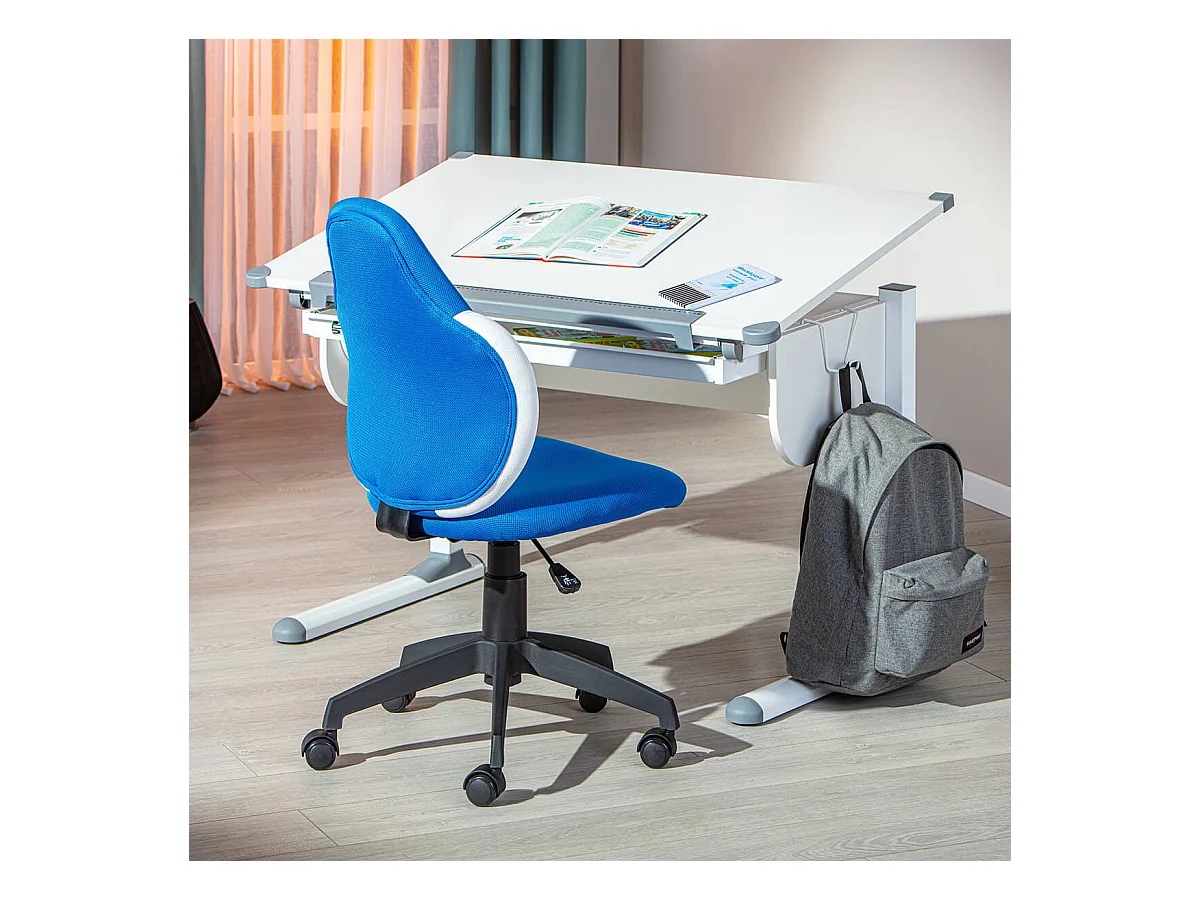 CLIDE BLEU - Fauteuil de bureau bleu pour enfant avec roulettes