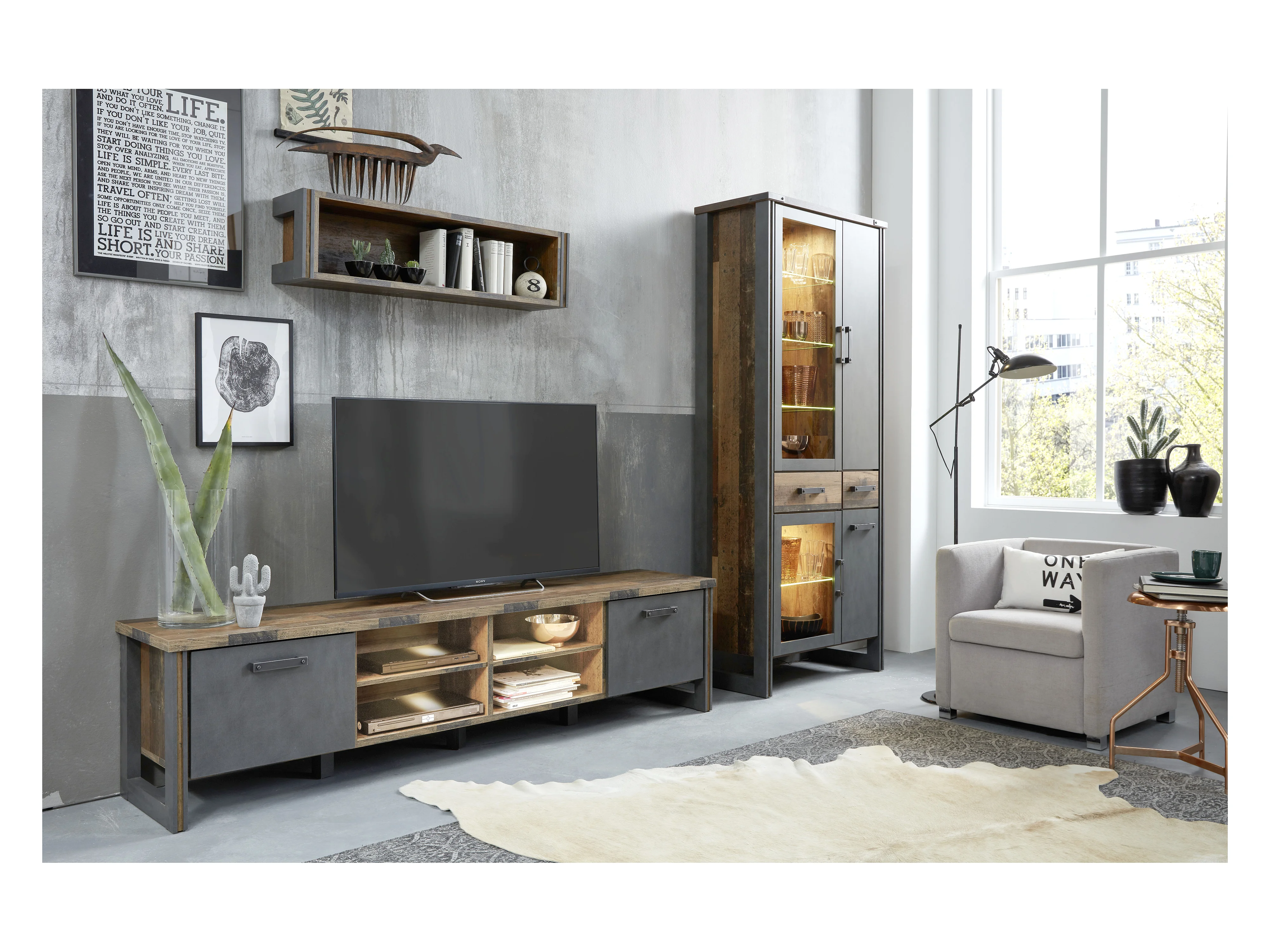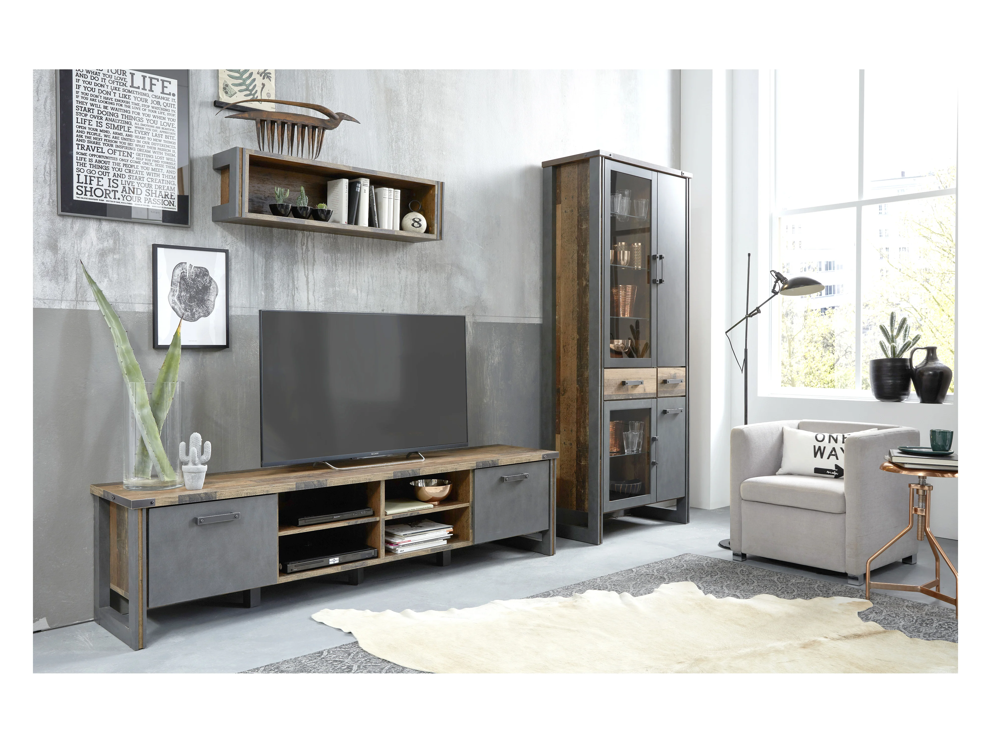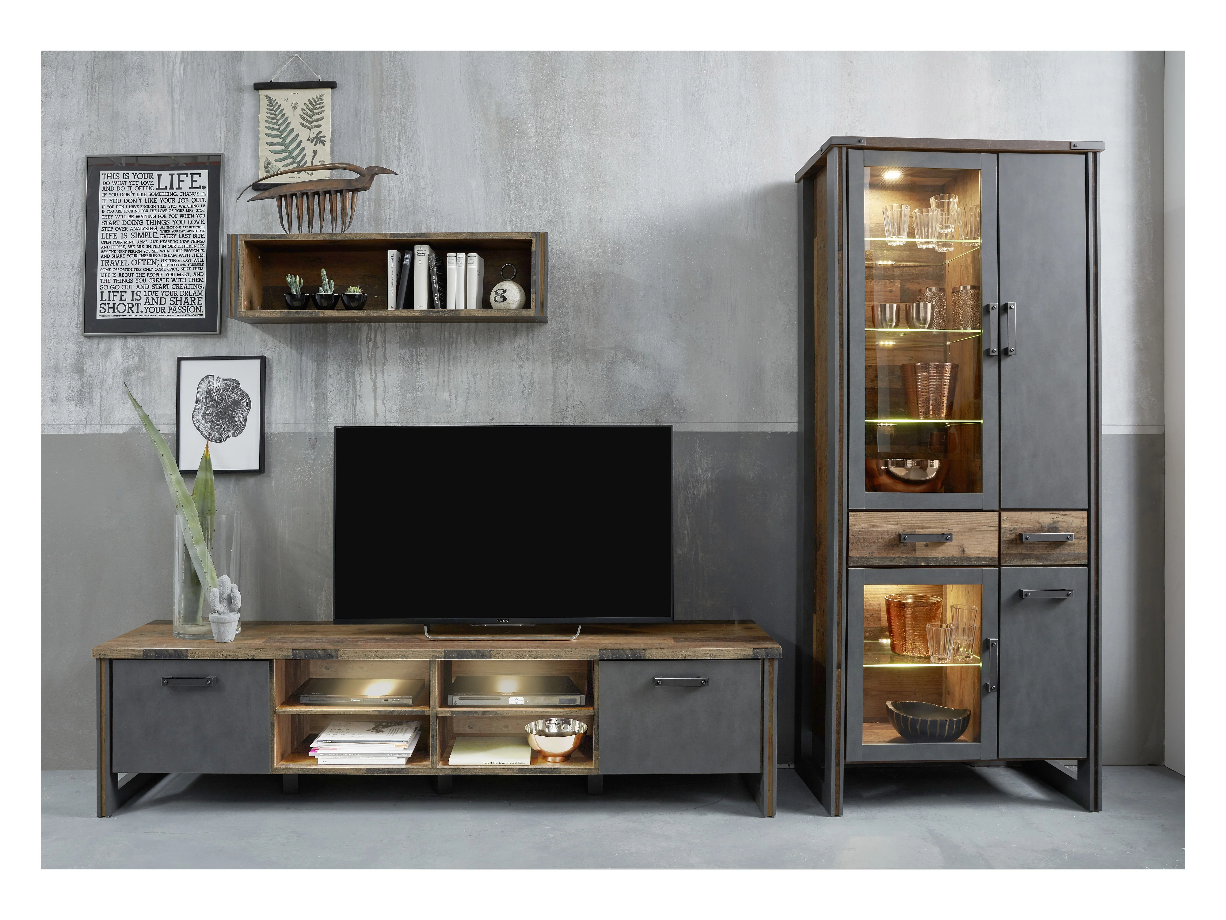 Prip Meuble TV, 4 Espaces de rangement et 2 portes battantes, look vieux bois, Matera .