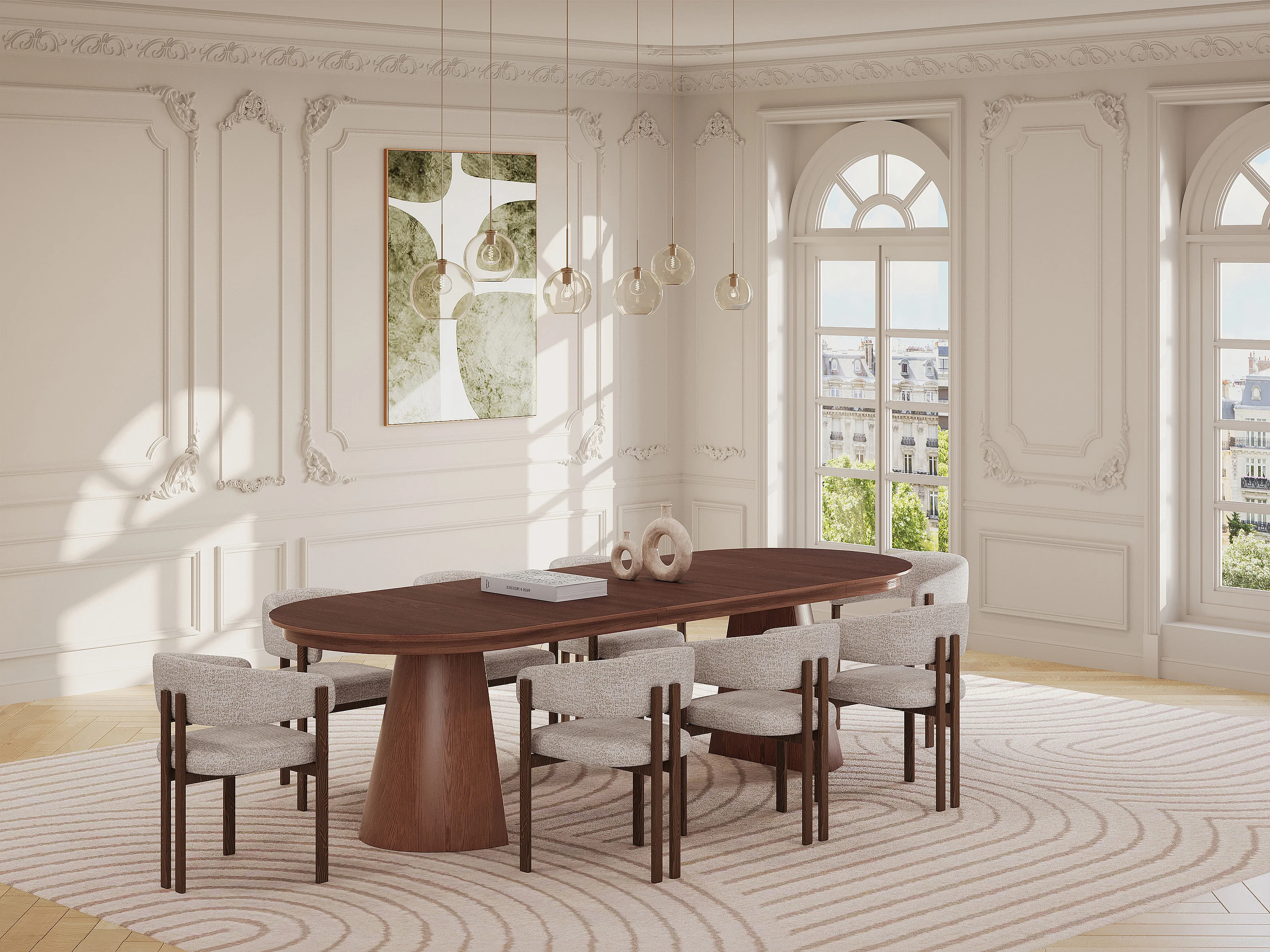 Table à manger extensible 4 à 10 personnes placage frêne - Naturel foncé - PRISLA