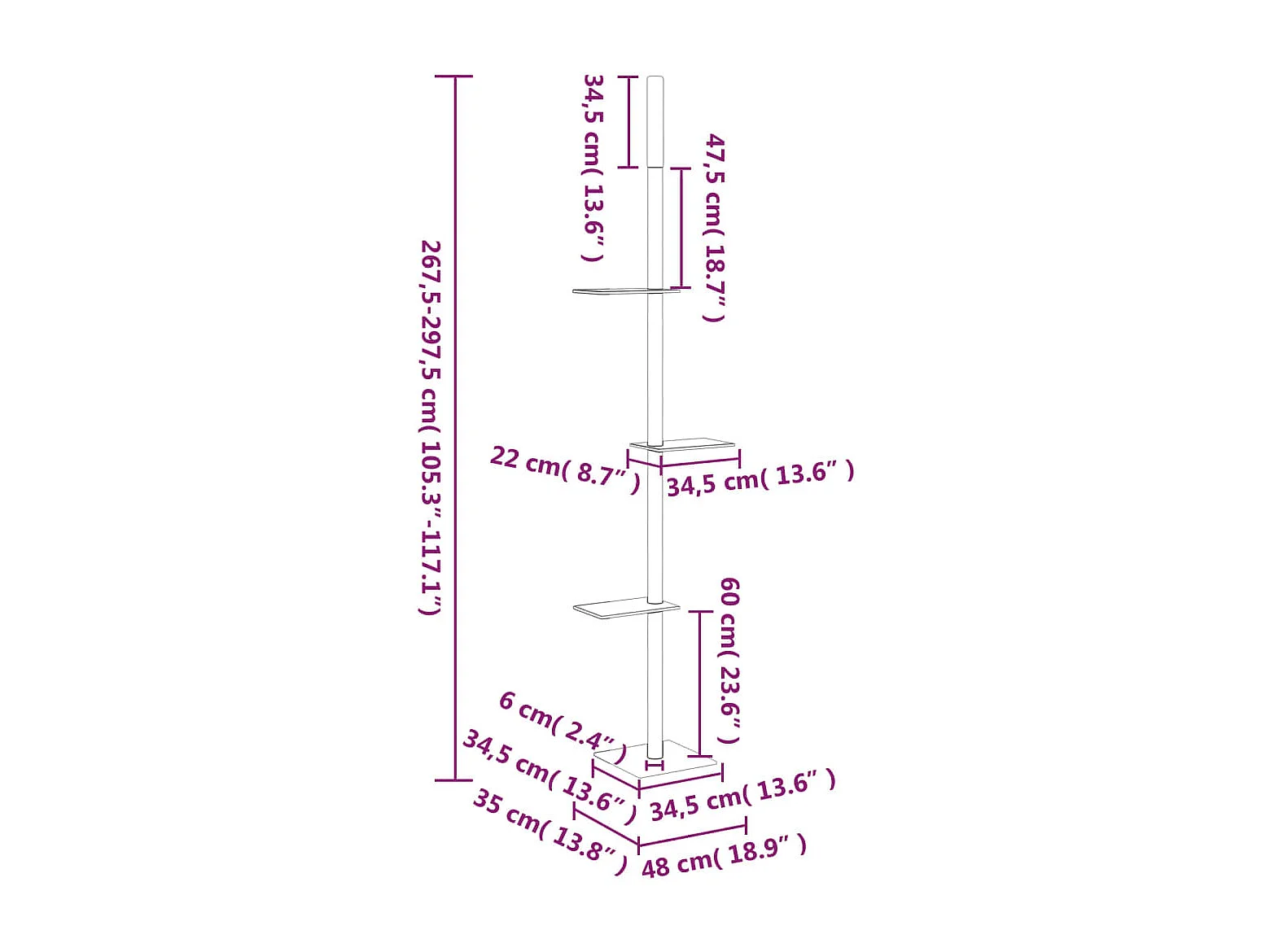 Prolenta Premium - Arbre à chat du sol au plafond Gris foncé 267,5-297,5 cm