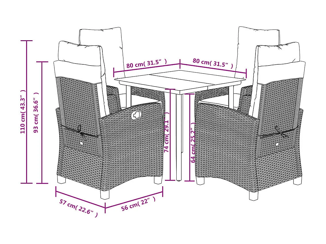 Prolenta Premium - Ensemble à manger de jardin avec coussins 5pcs Beige poly rotin