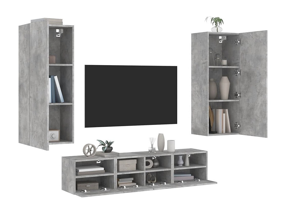 Prolenta Premium - Unités murales TV 5 pcs gris béton bois d'ingénierie
