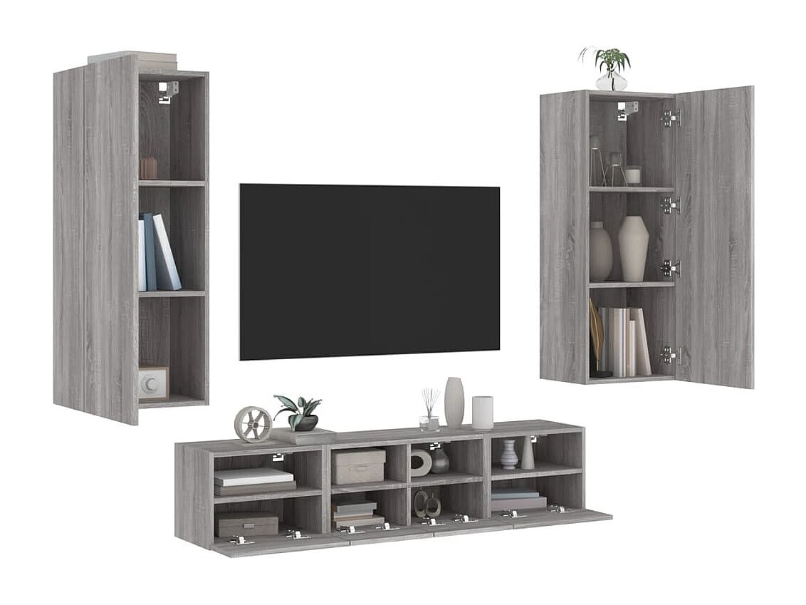 Prolenta Premium - Unités murales TV 5 pcs sonoma gris bois d'ingénierie