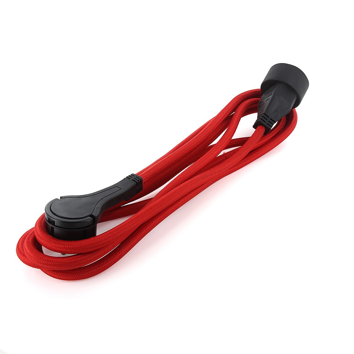 Prolongateur textile fiche plate 3m - rouge et noir - Chacon