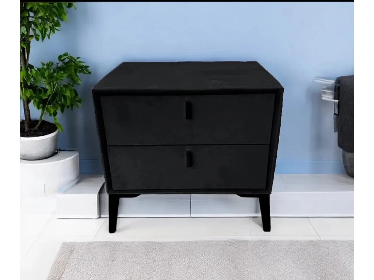 Protocole Home Table de chevet en velours, 2 tiroirs, 50 x 40 x 45 cm, pieds en bois et poignées noires.