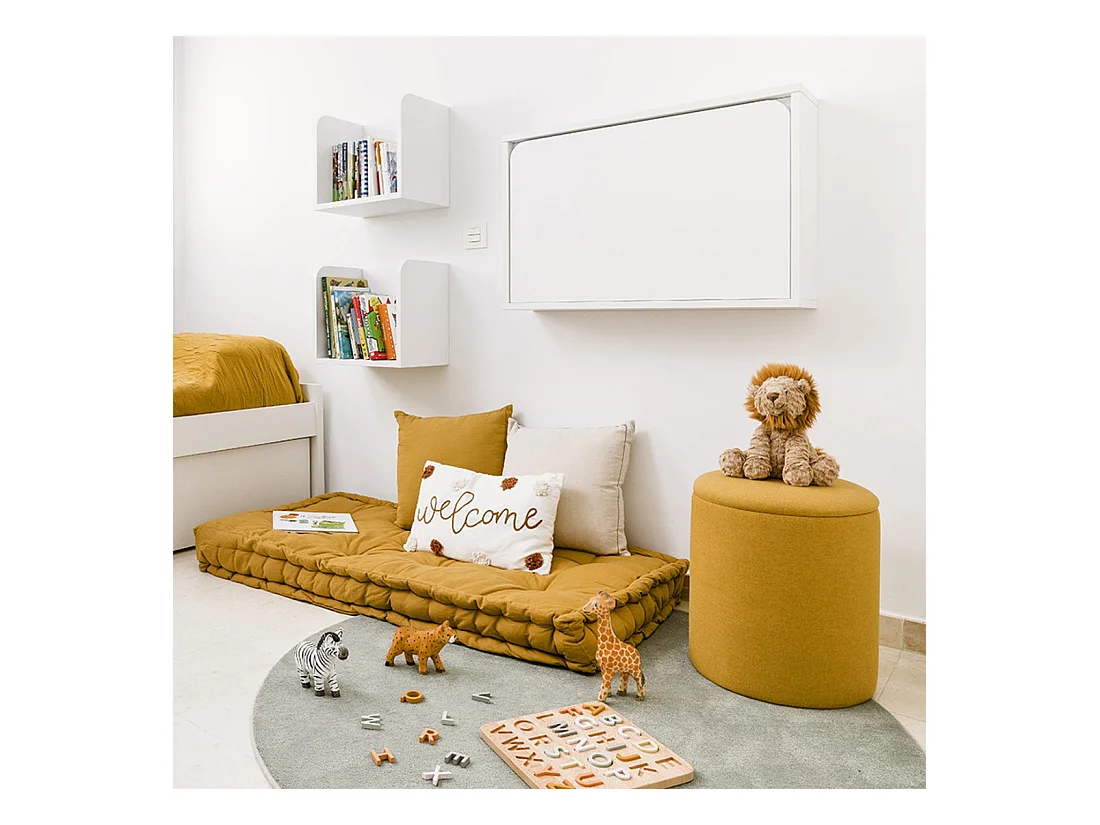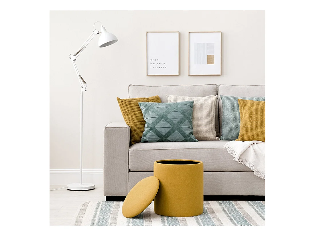 Pouf tapissé moutarde 40 cm x 35 cm-Claud