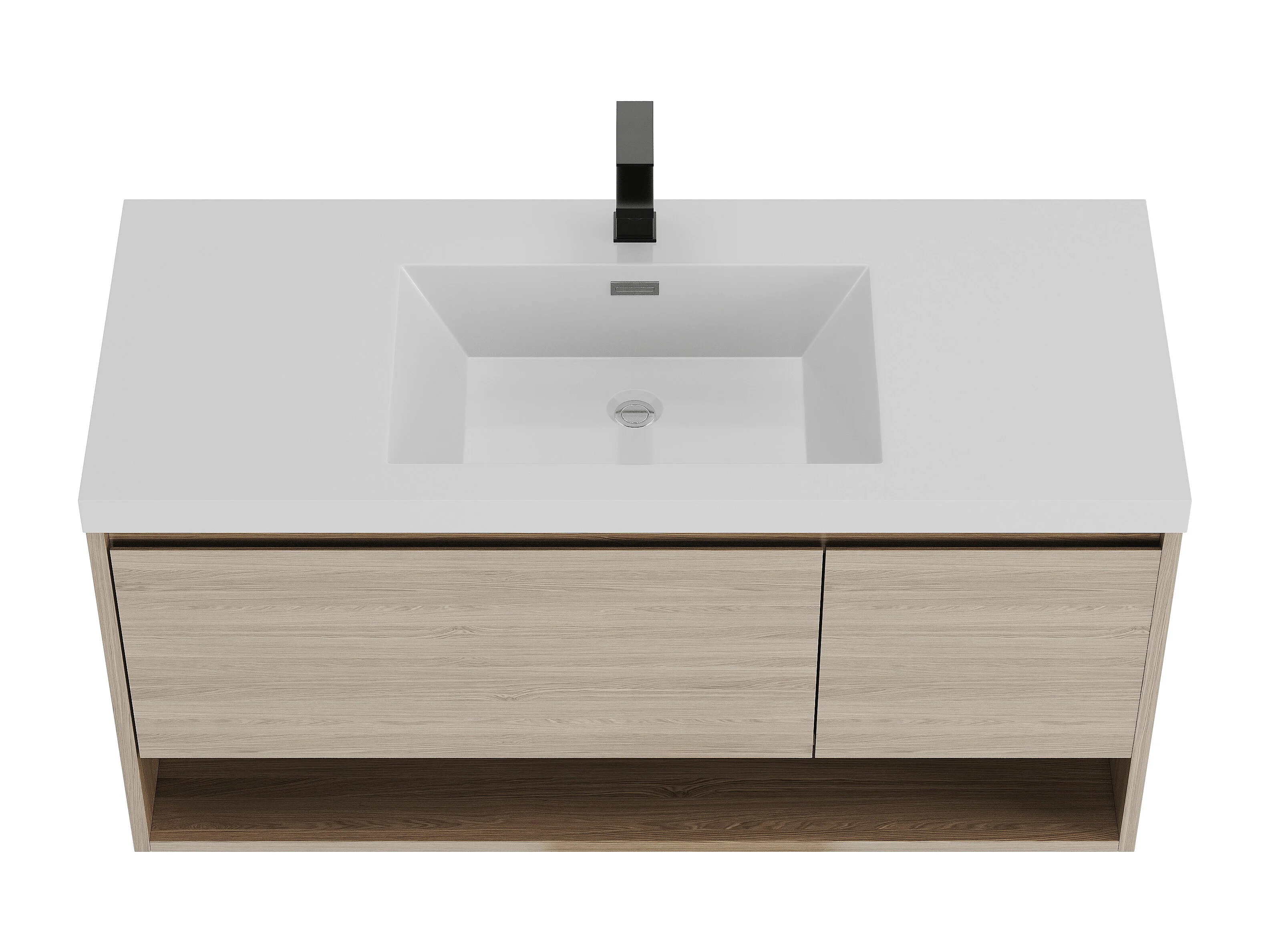Meuble de salle de bain suspendu simple vasque coloris naturel clair avec robinet - 120 cm - PUJUKA