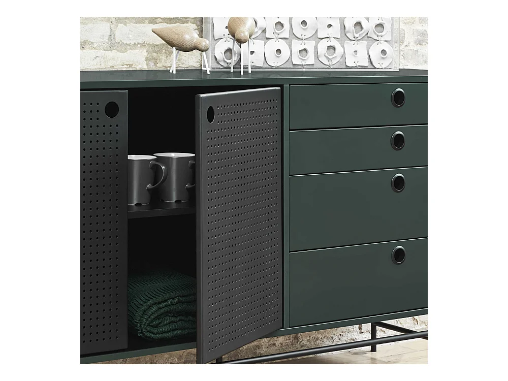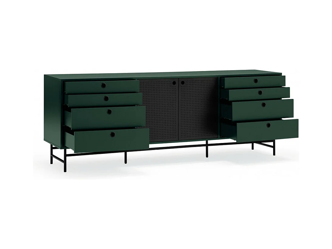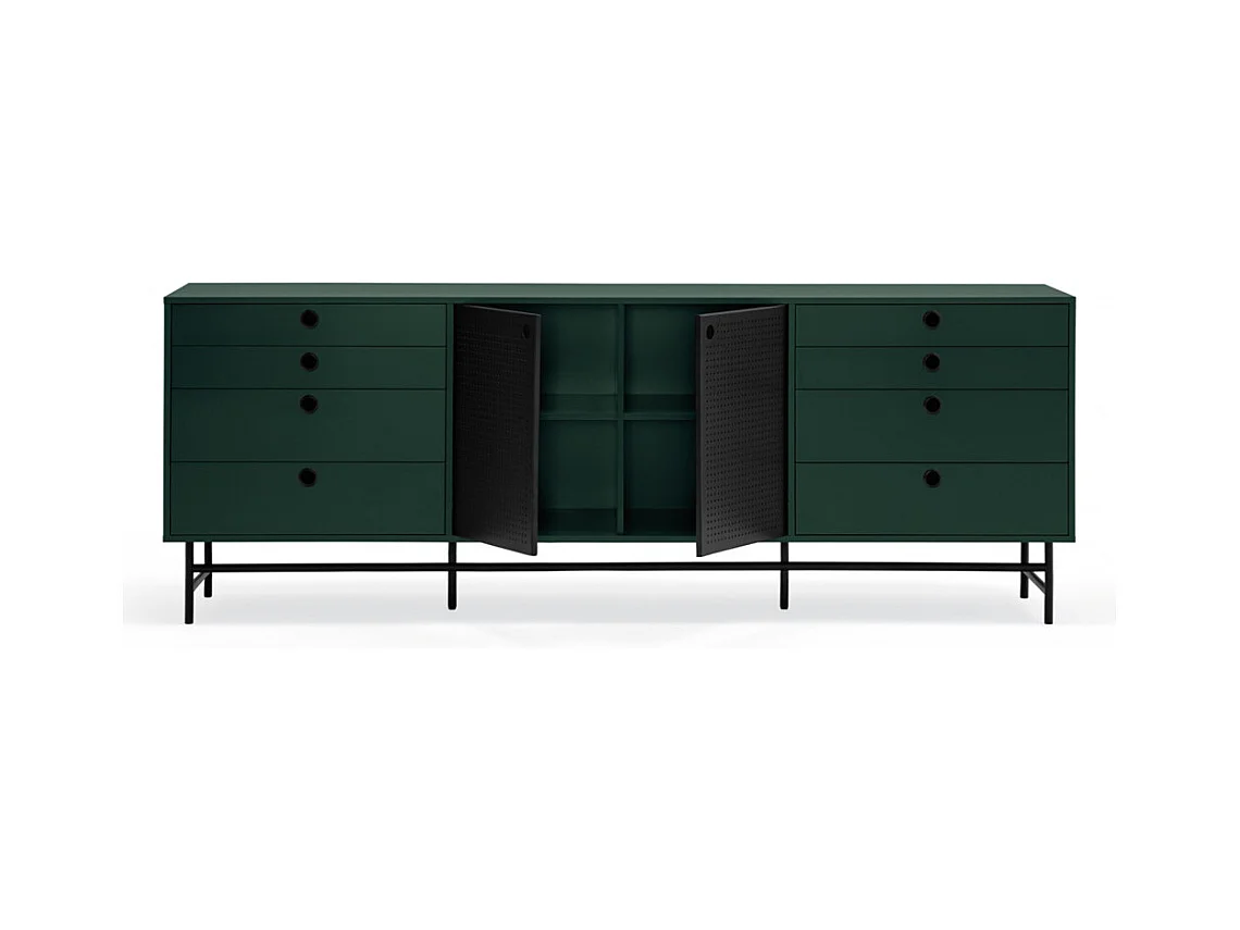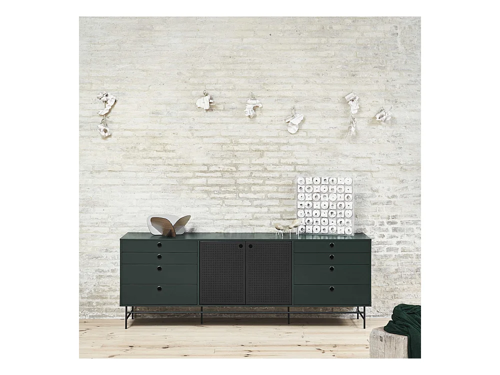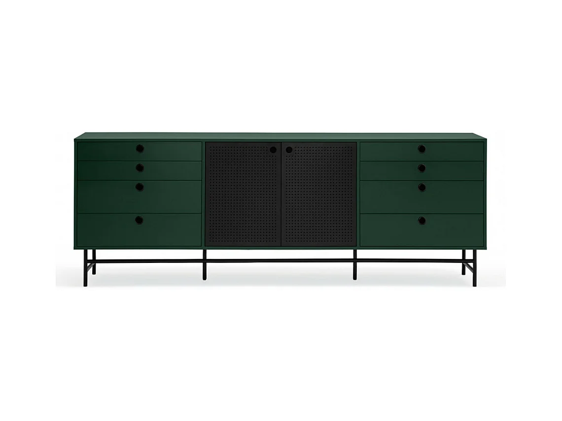 Punto - Buffet en bois 2 portes 8 tiroirs L212cm : Couleur - Vert forêt