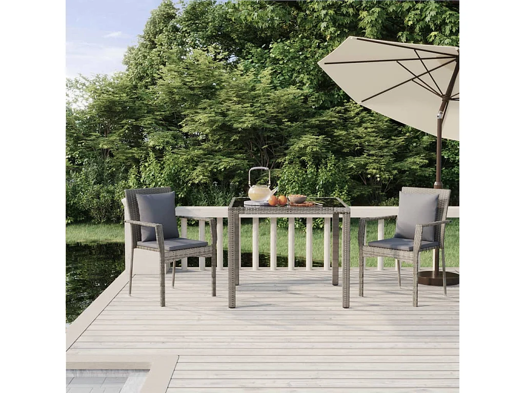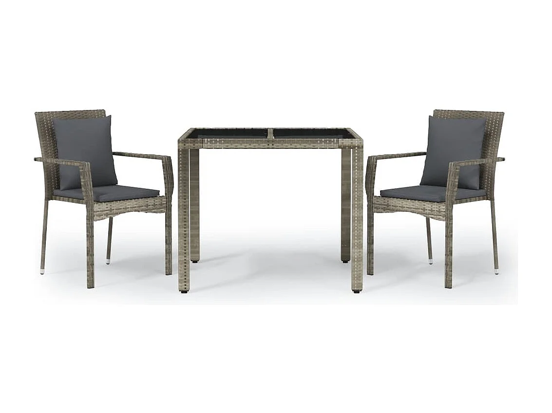 Pyhäntä Ensemble à manger de jardin 3 pcs coussins gris résine tressée