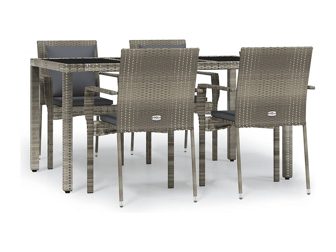 Pyhäntä Ensemble à manger de jardin 5 pcs coussins gris résine tressée