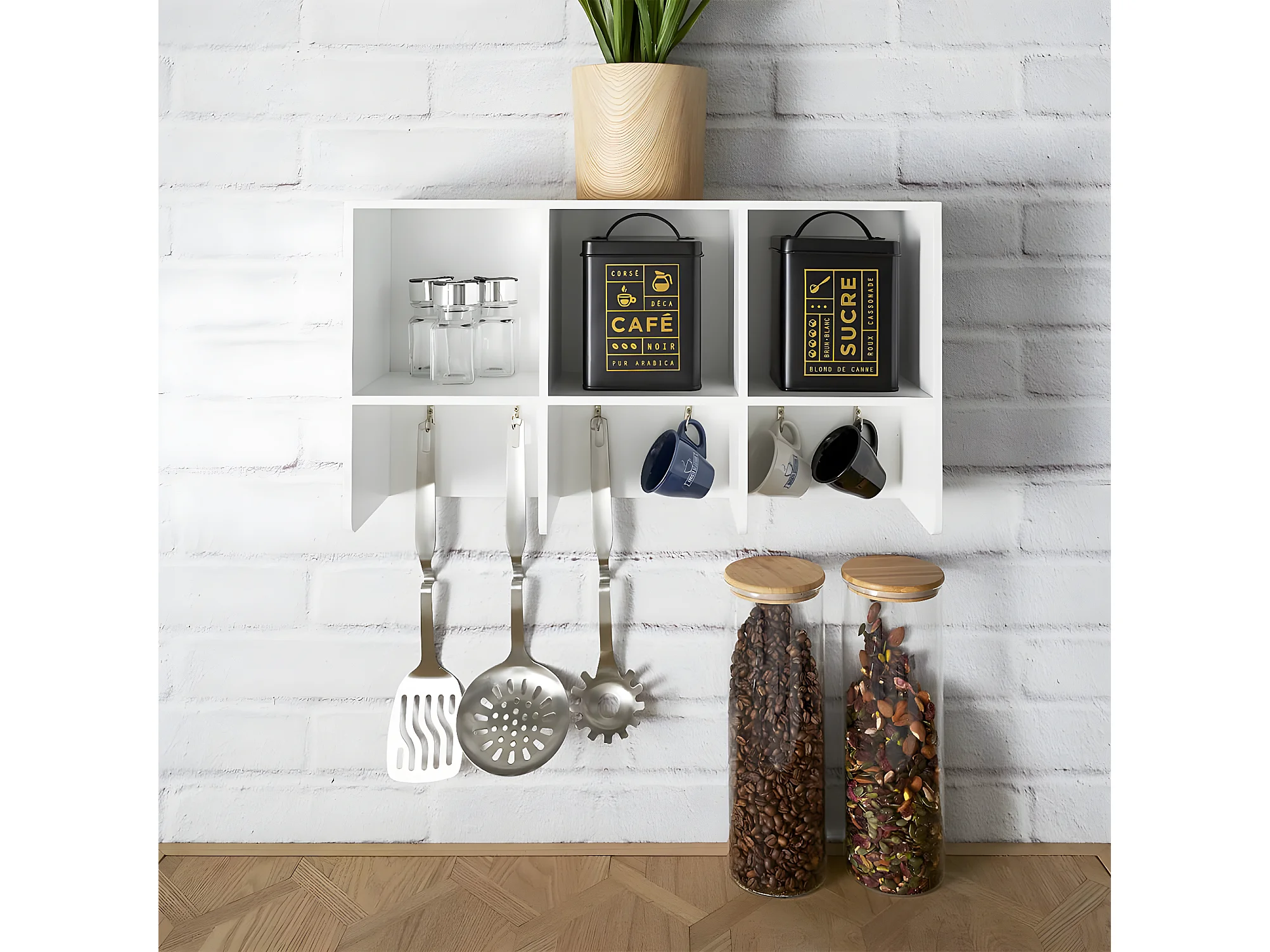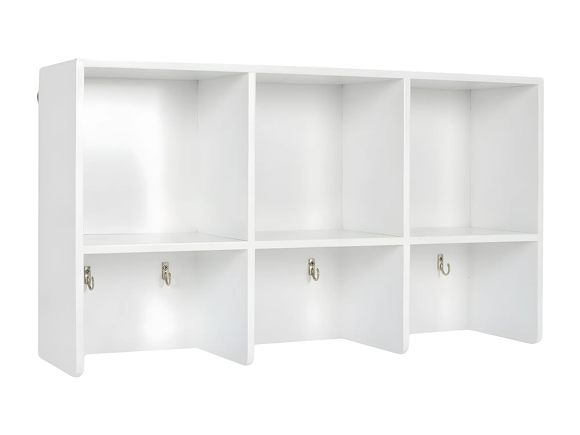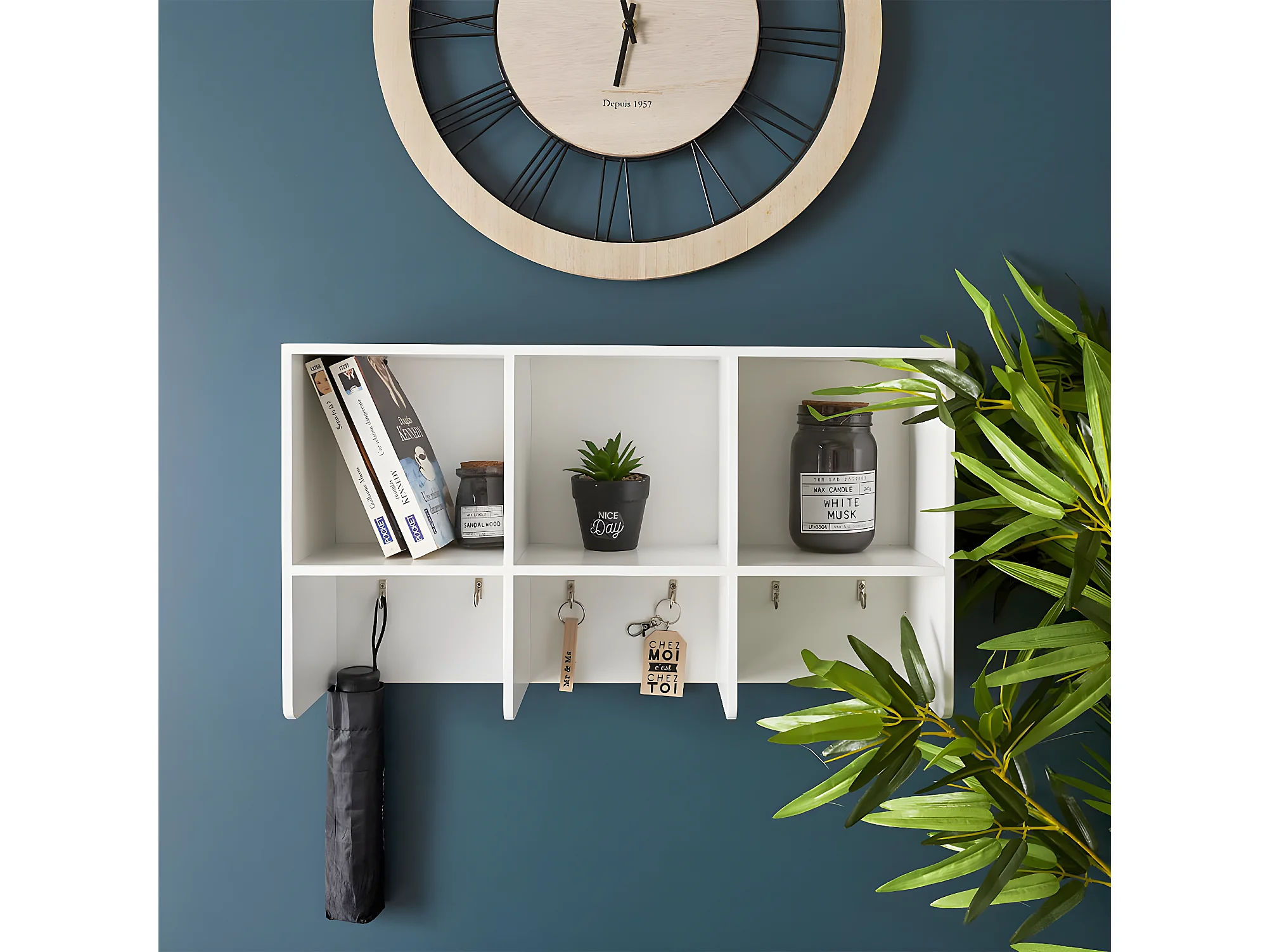 QIUSHY - Etagère Murale Blanches 3 Compartiments et Crochets
