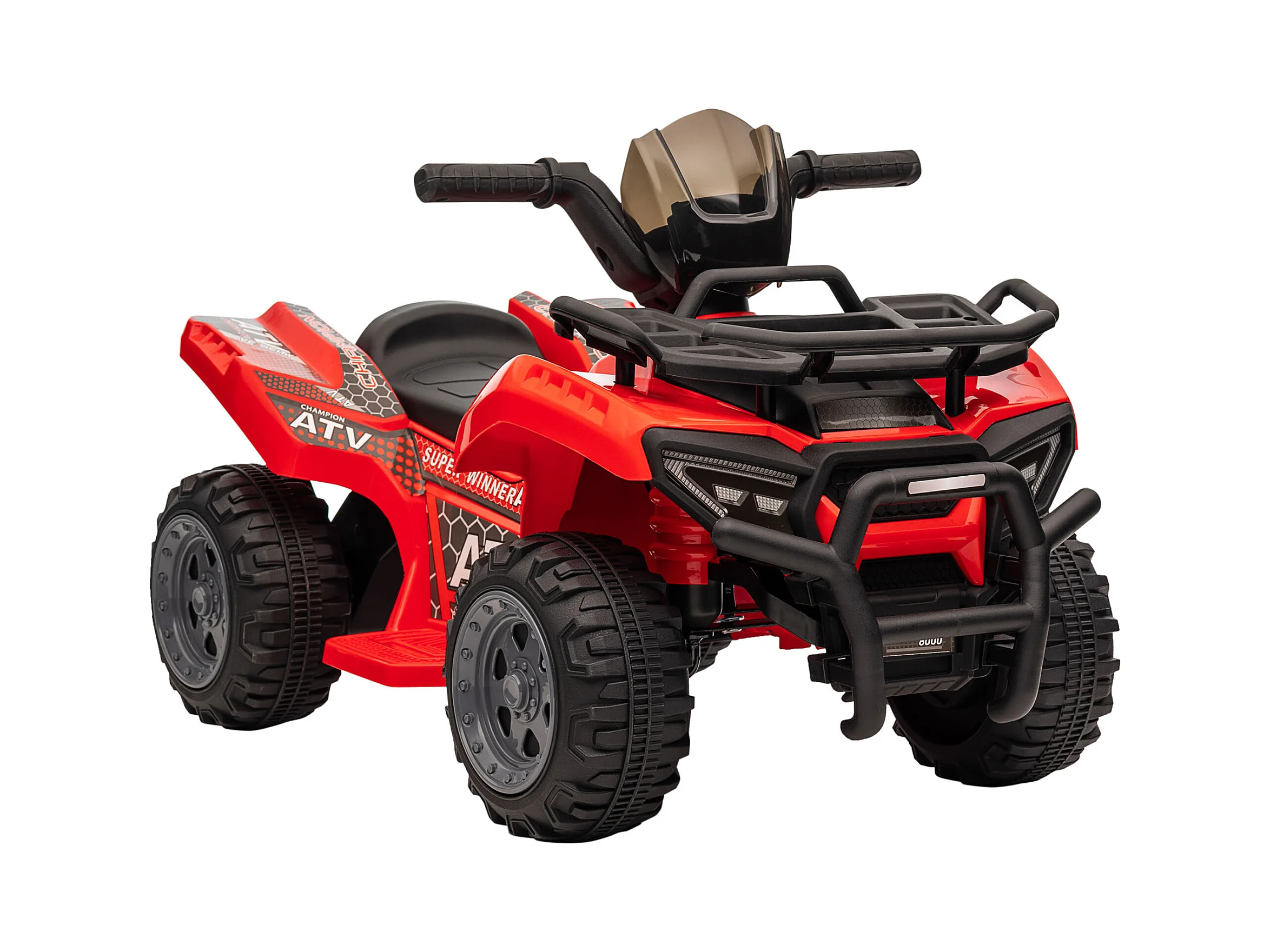 Voiture 4x4 quad buggy électrique enfant 12 V 5 Km/h max. effets lumineux sonores selle avec dossier porte-bagage avant métal PP rouge noir