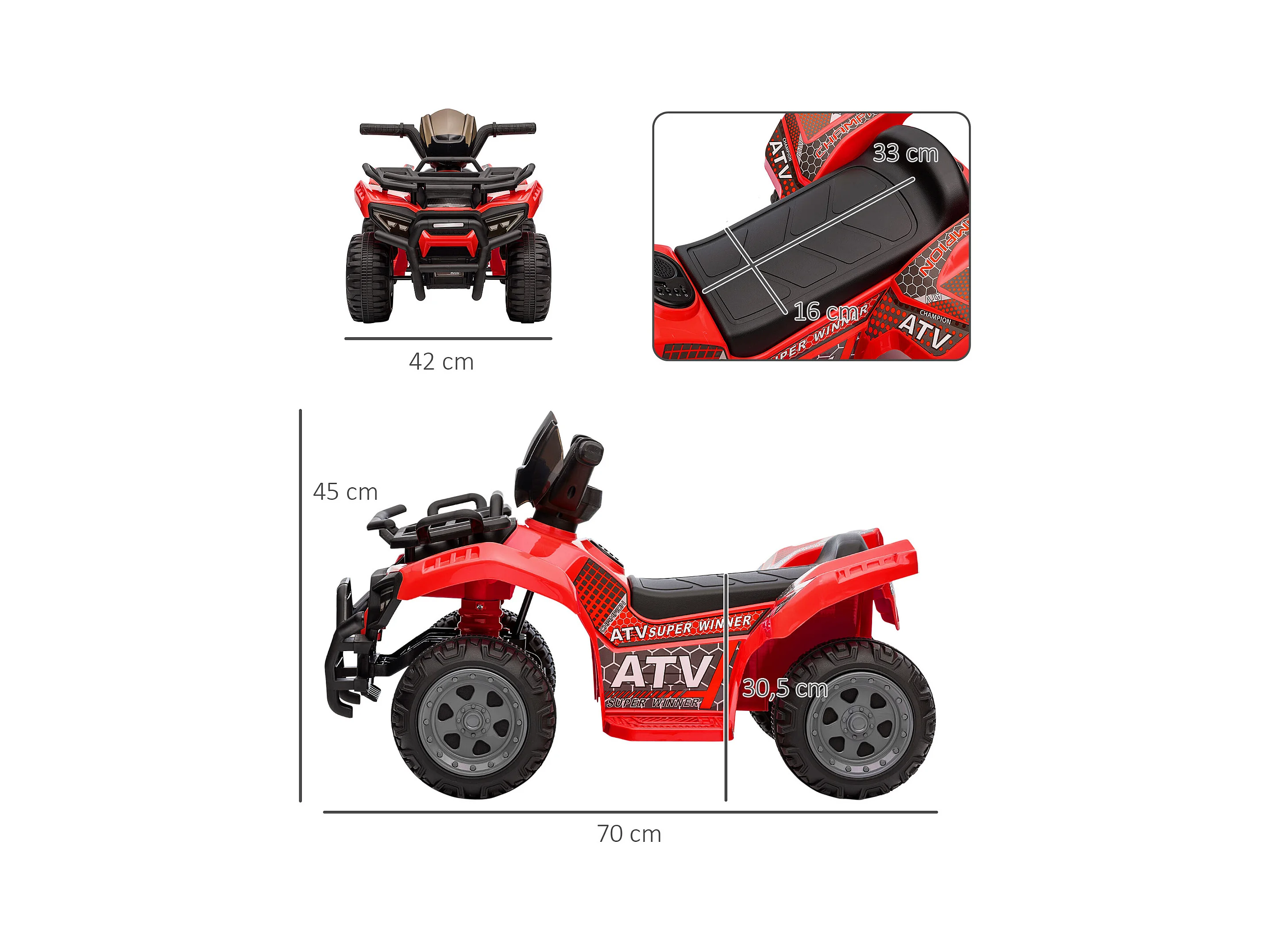 Quad buggy voiture électrique enfant 18-36 mois 6 V 2 Km/h max. effet lumineux métal PP rouge