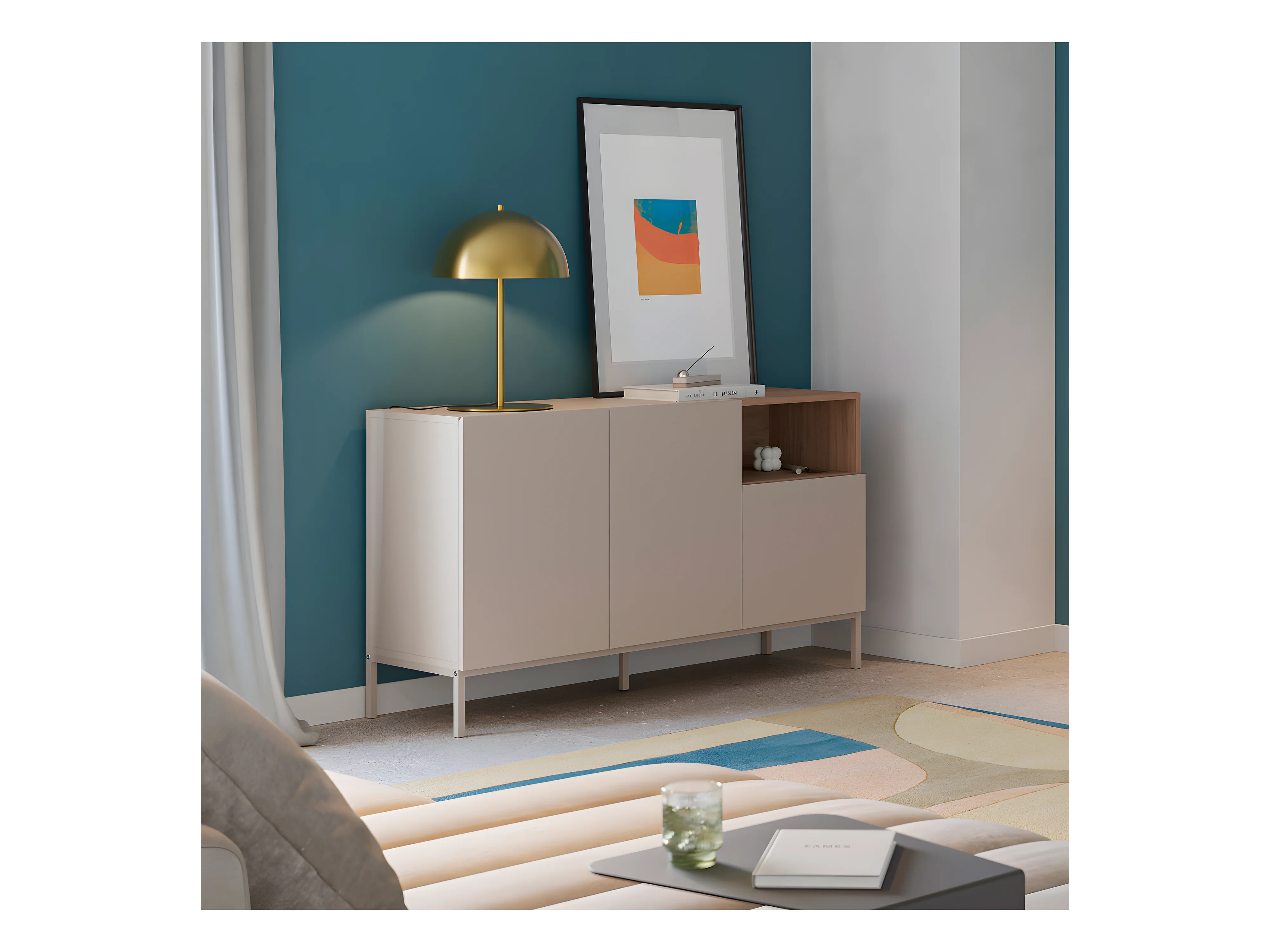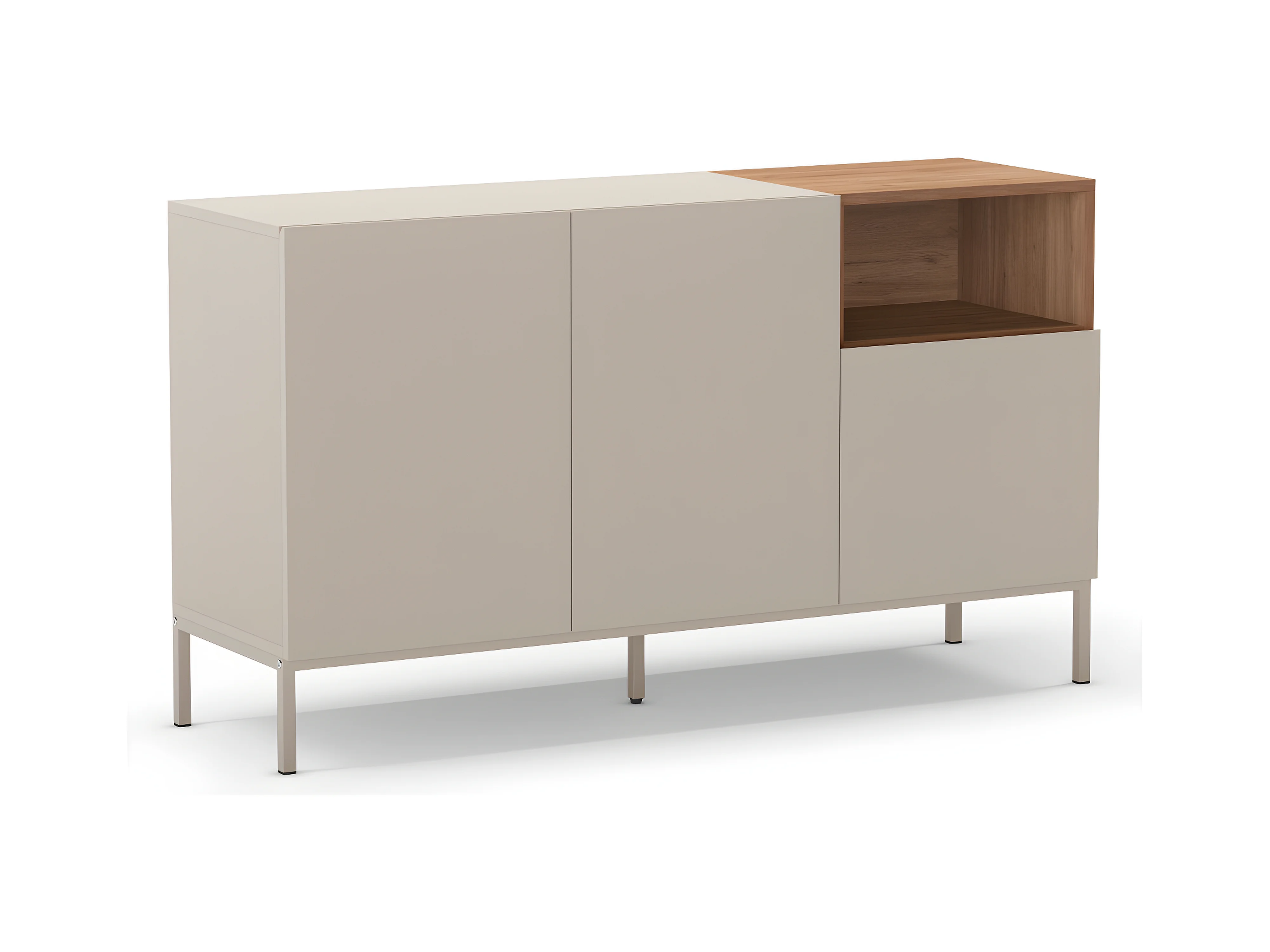 Quenor - Buffet 3 portes en bois et métal L140cm - Beige