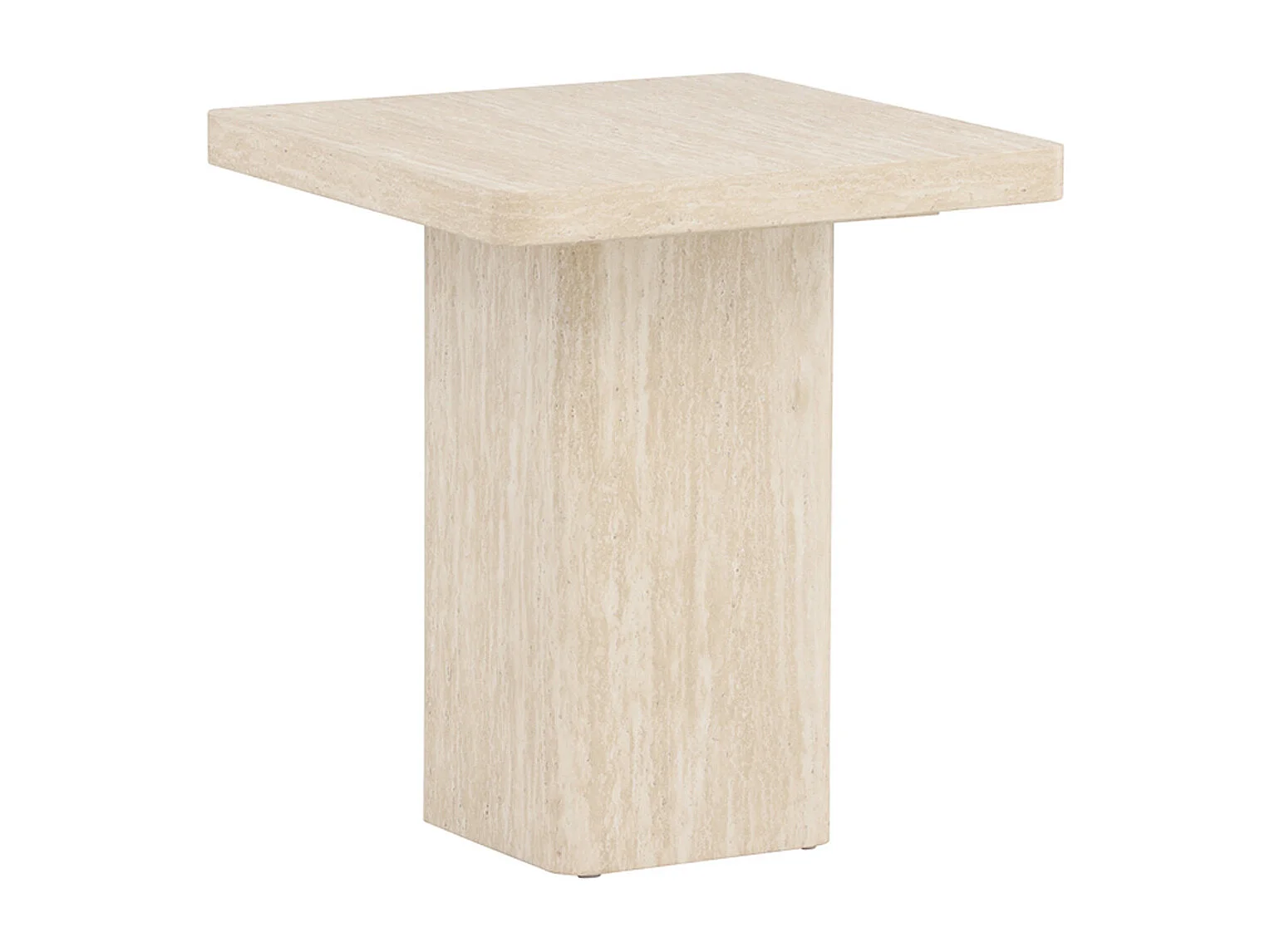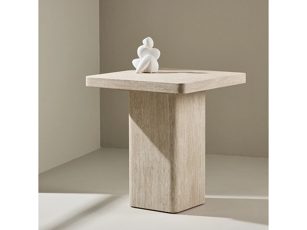 Table d'Appoint Effet Travertin "Qvart" 56cm Beige