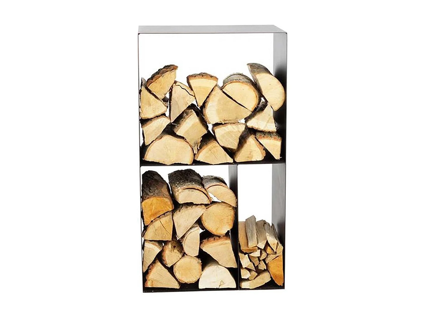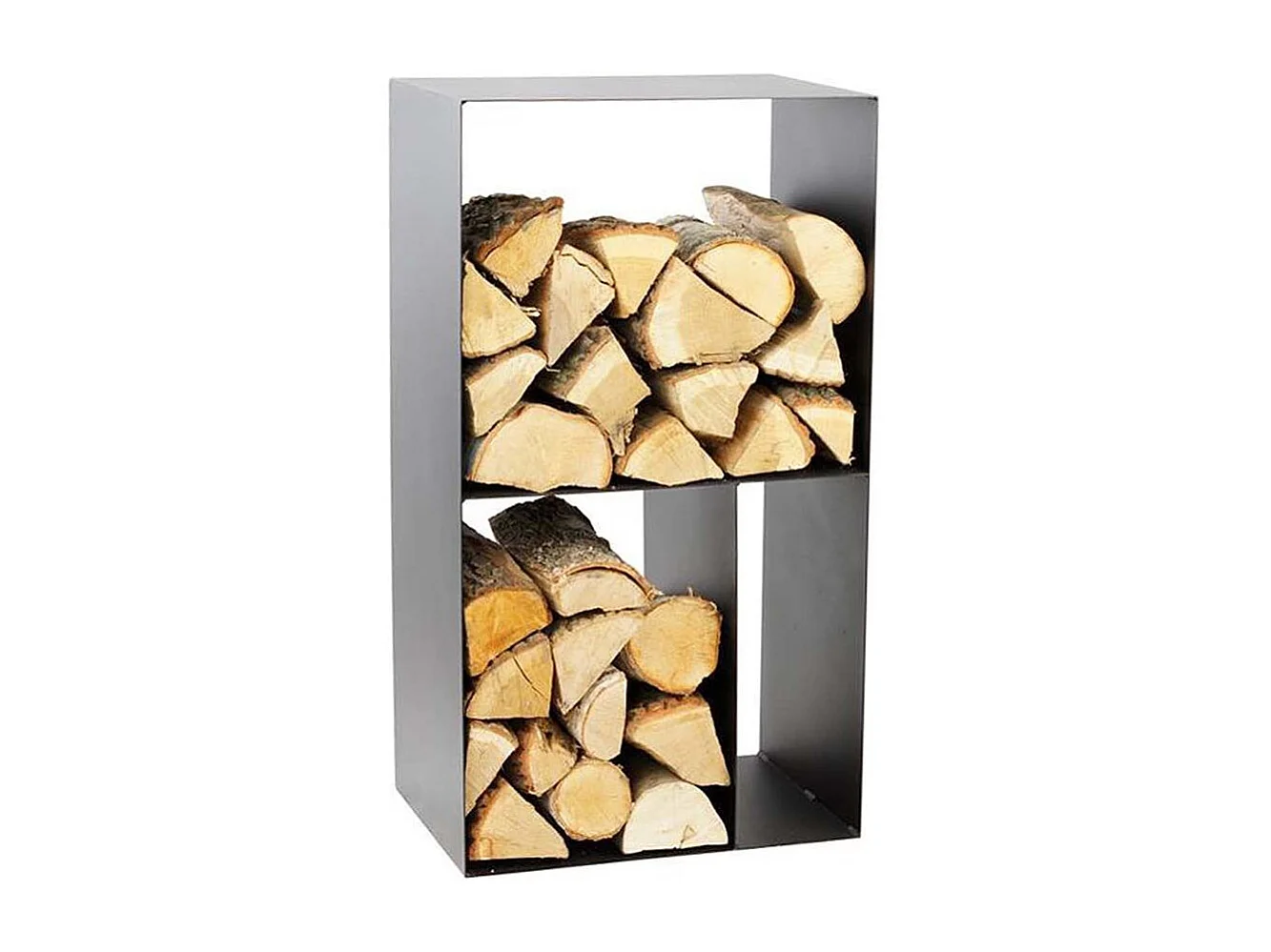 Rack à bûches CASO en acier noir avec rangement 45x30x80 cm