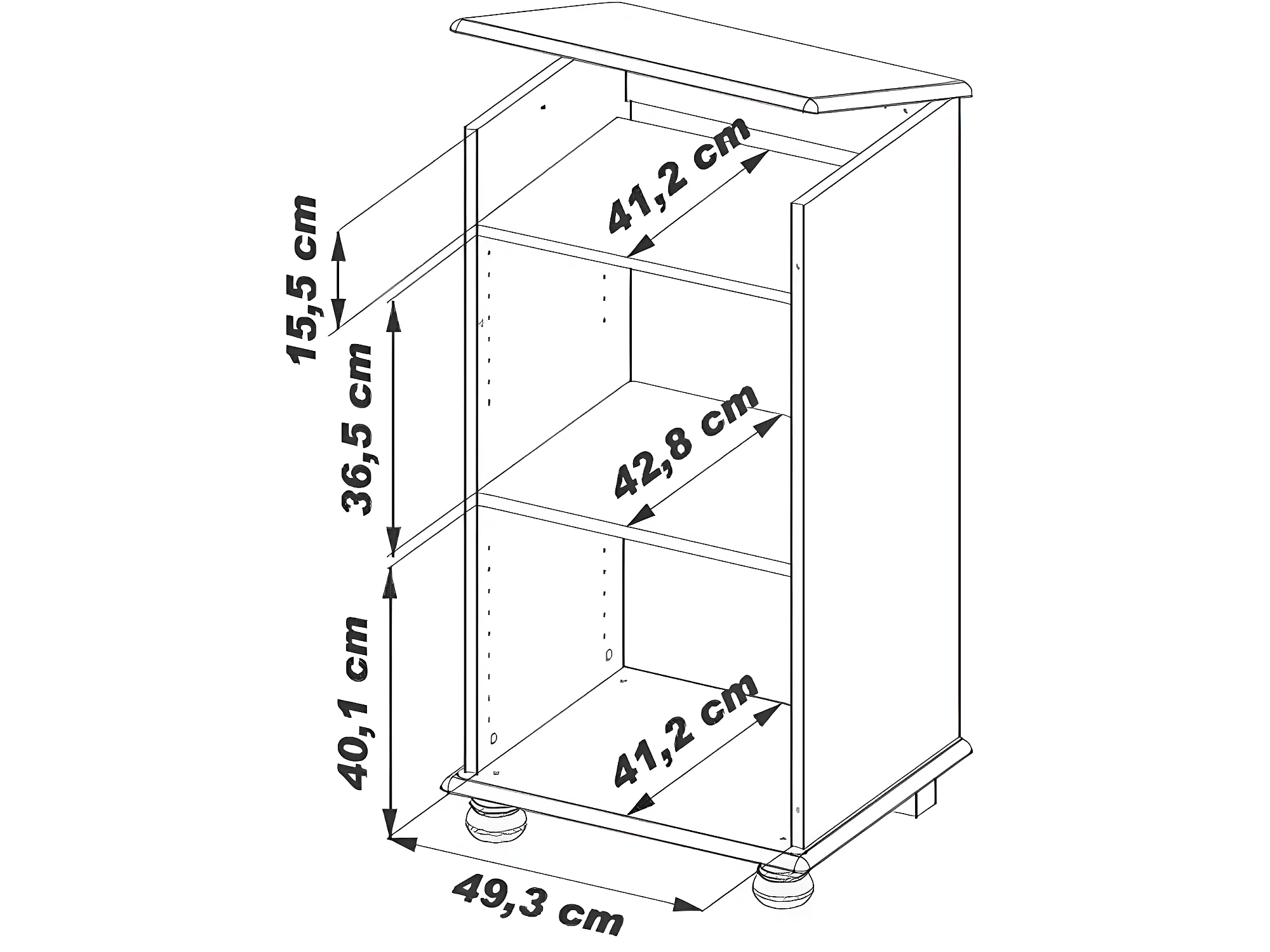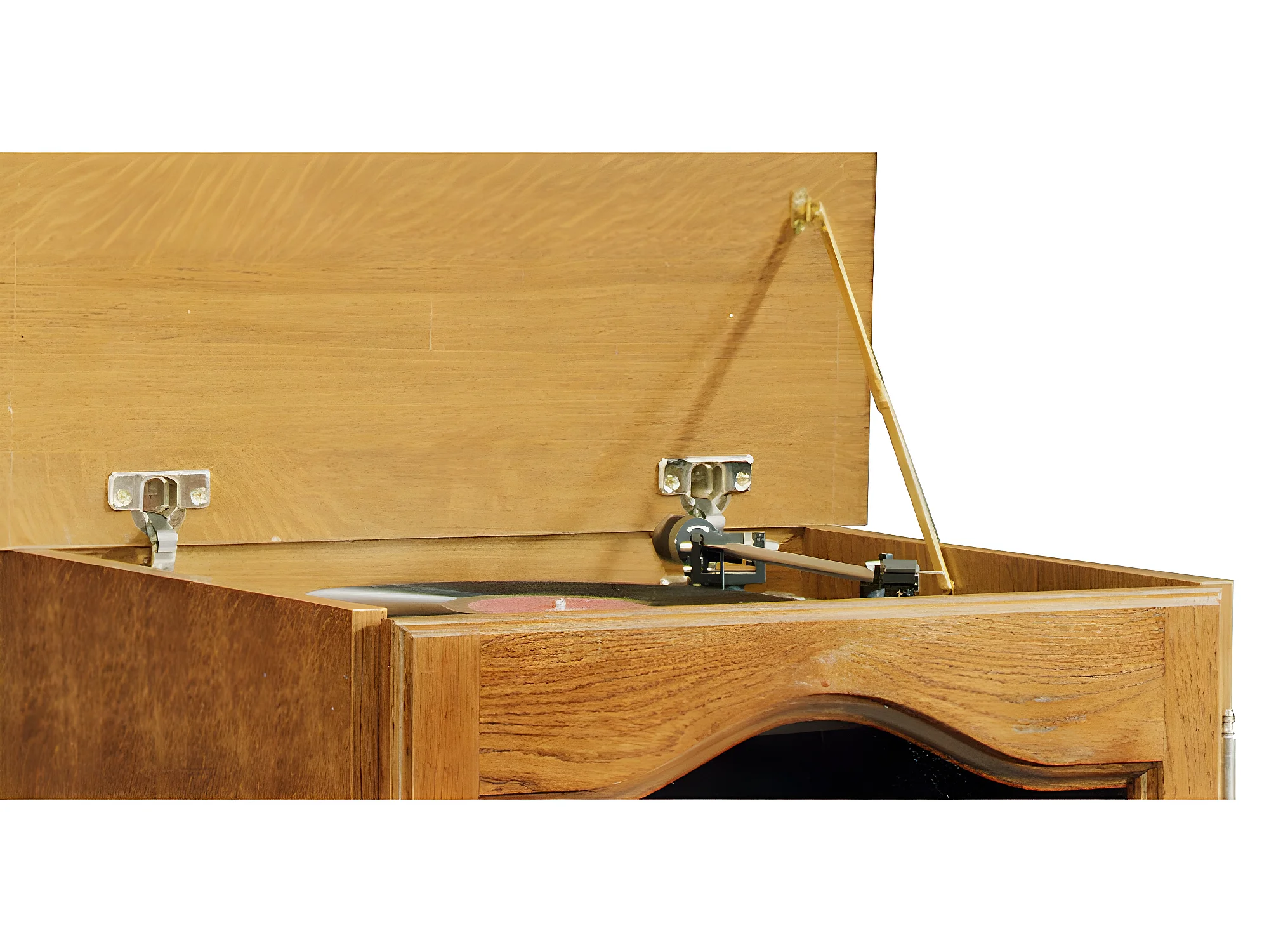 Rack HiFi Chêne 1 Porte Vitrée Dessus Relevable 5 Niches L 57 H 107 P 46.5 cm