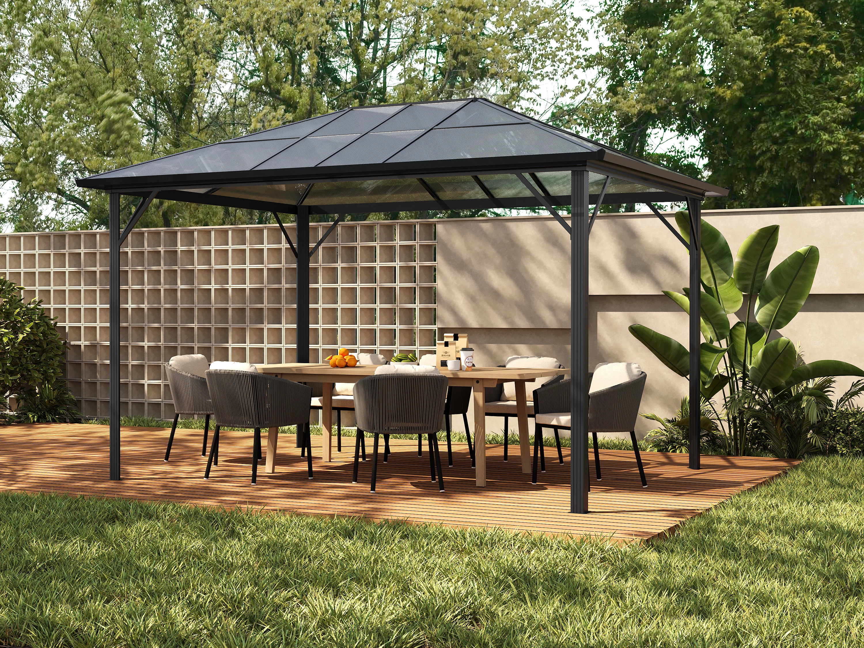 Tonnelle de jardin en aluminium 3 x 3,98 m - 11,9 m² - RADELA
