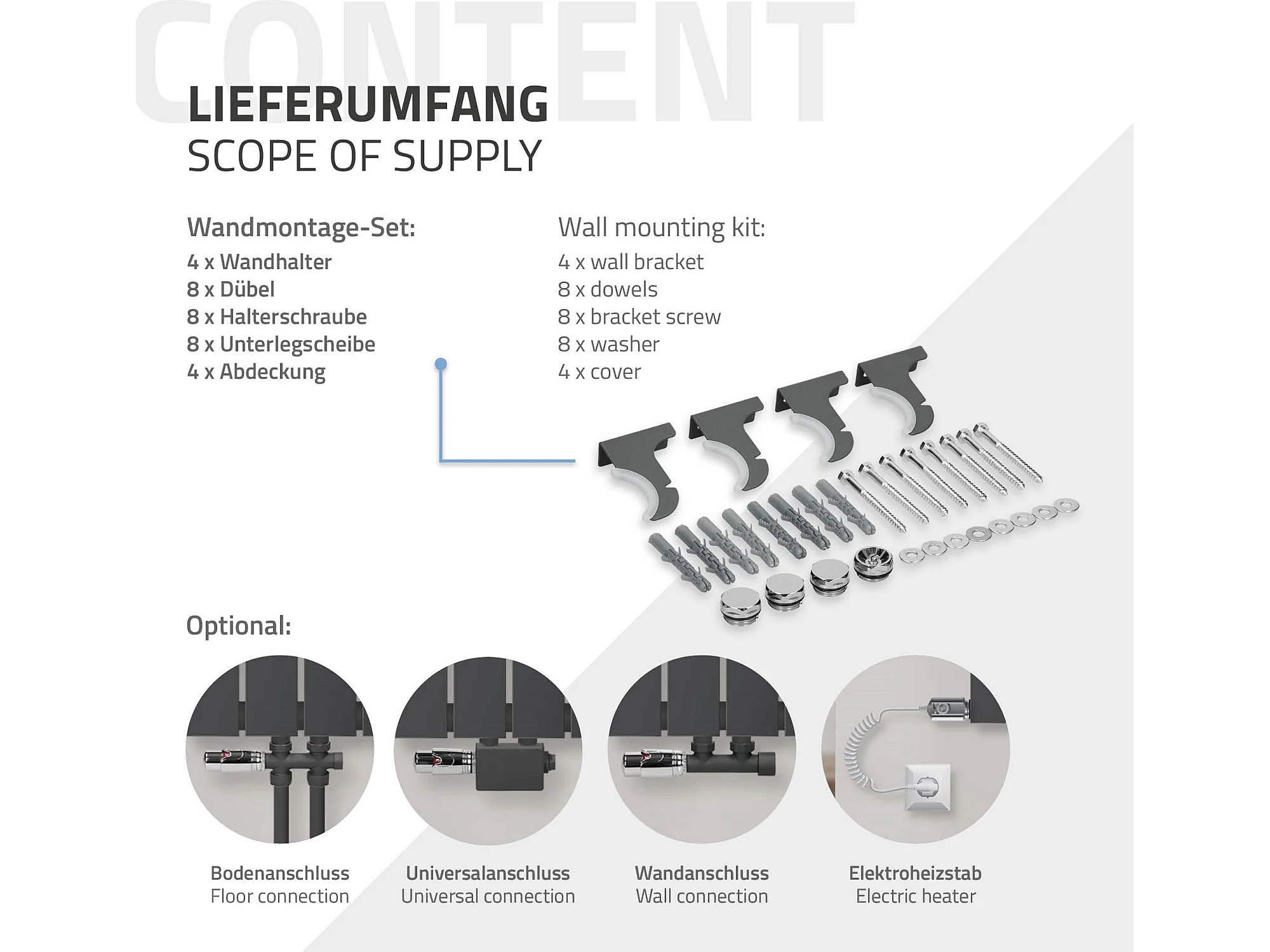 Radiateur à panneaux double couche anthracite 300x1600mm élement électrique 900W