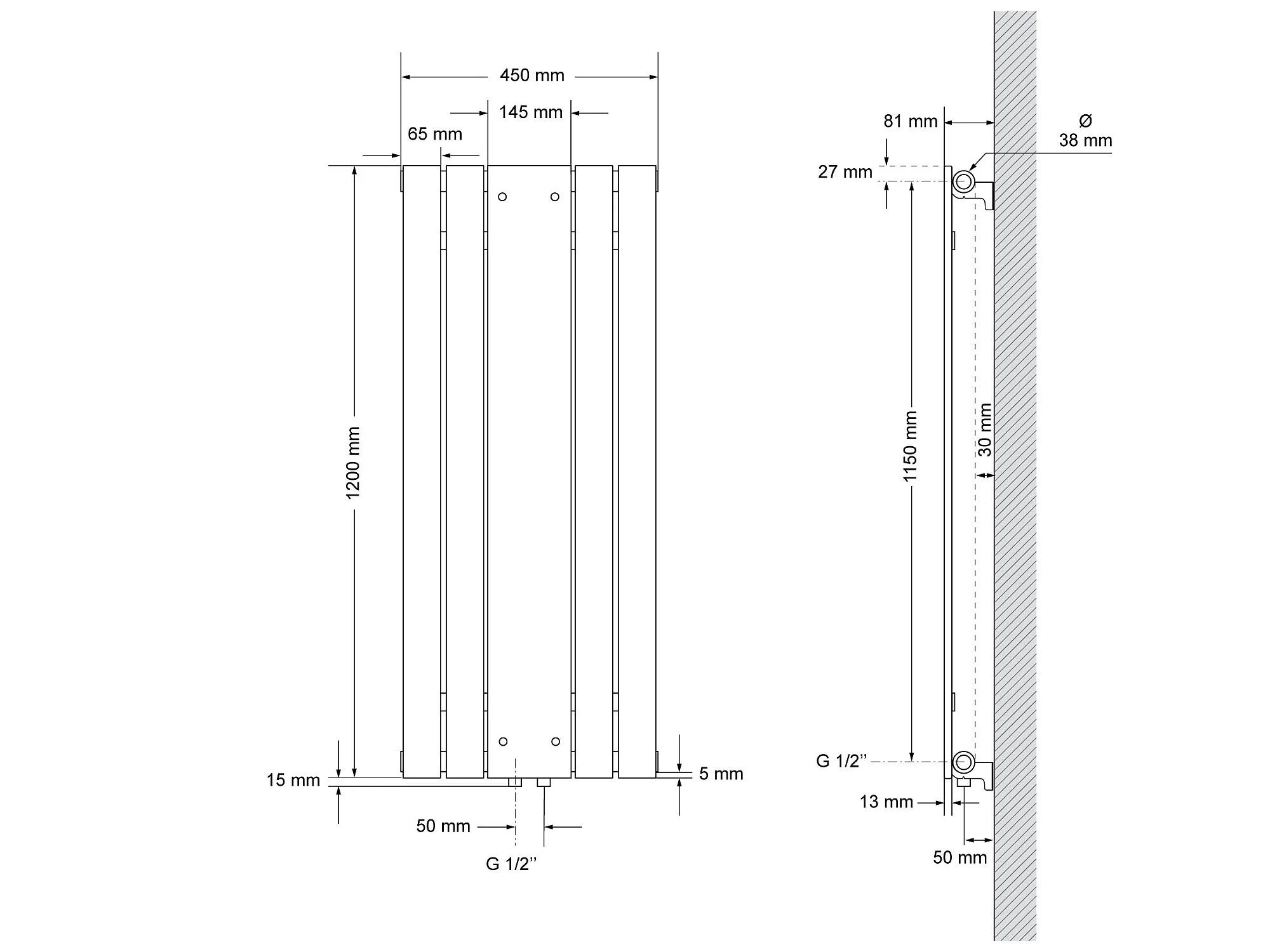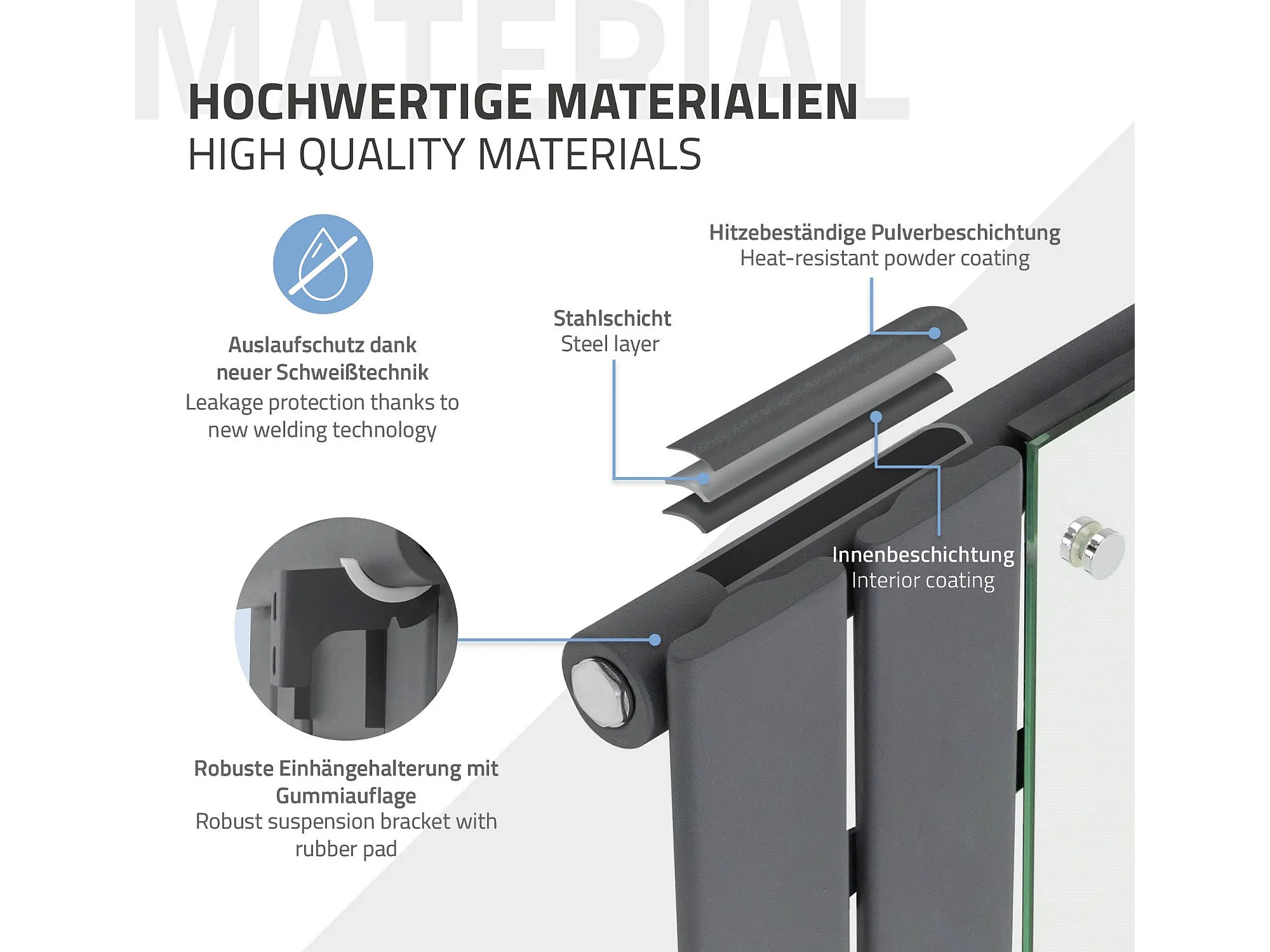 Radiateur anthracite salle de bain 450x1200 mm miroir raccord central mural