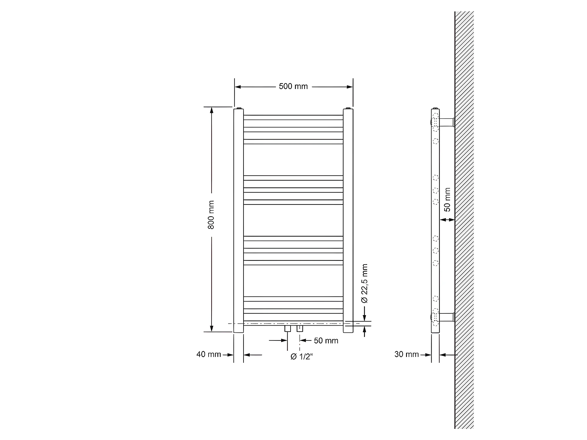 Radiateur de salle de bain Sahara raccord central chauffe-serviettes noir 50x80cm