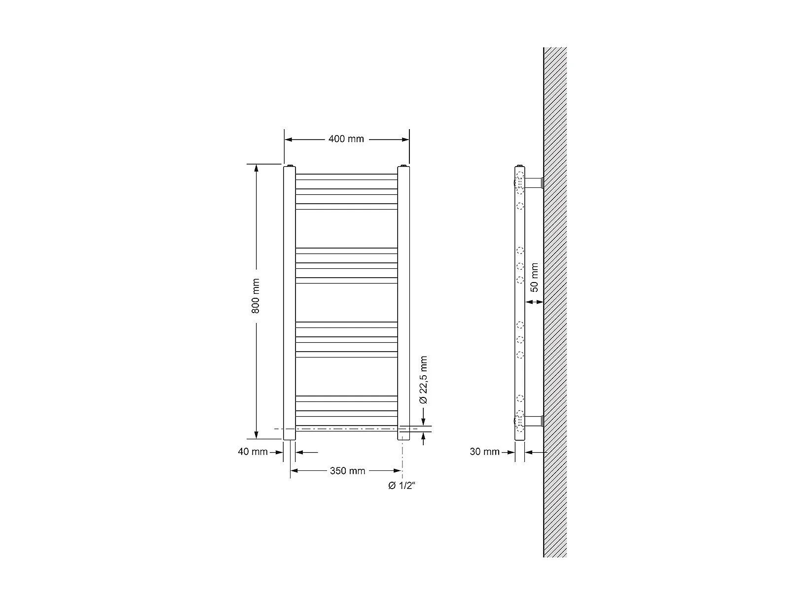 Radiateur sèche-serviette forme droite acier blanc connexion latérale 50x80 cm