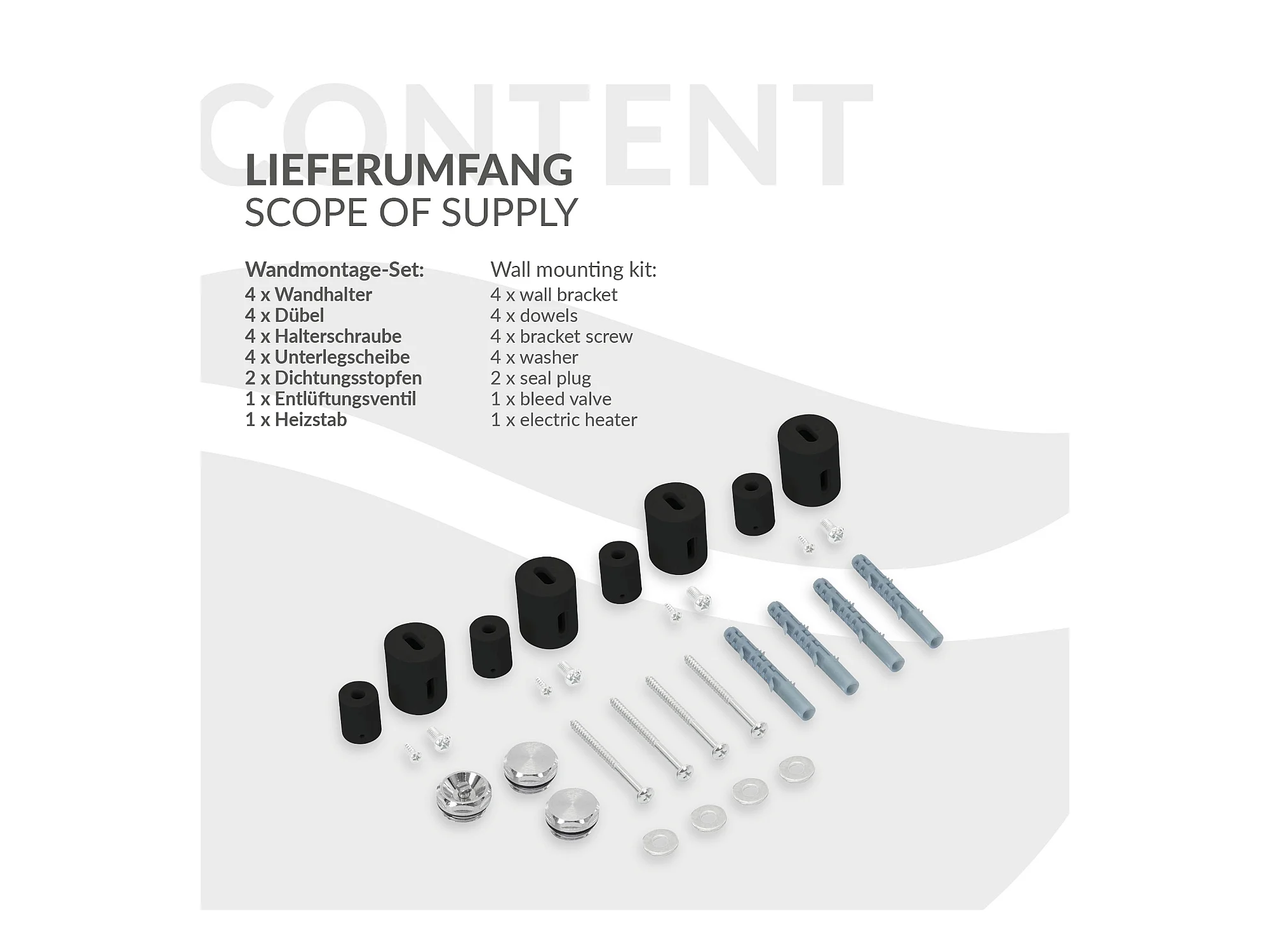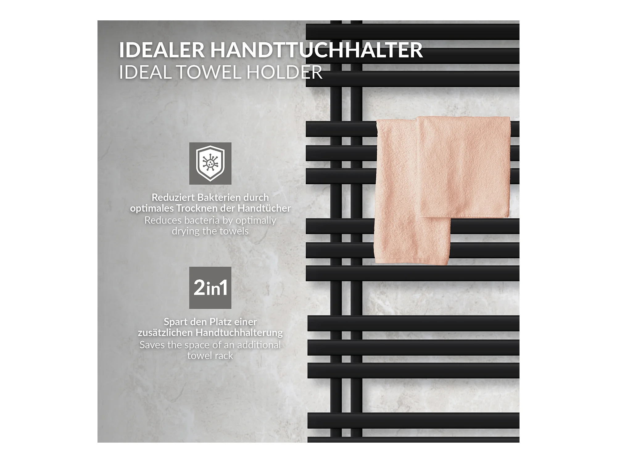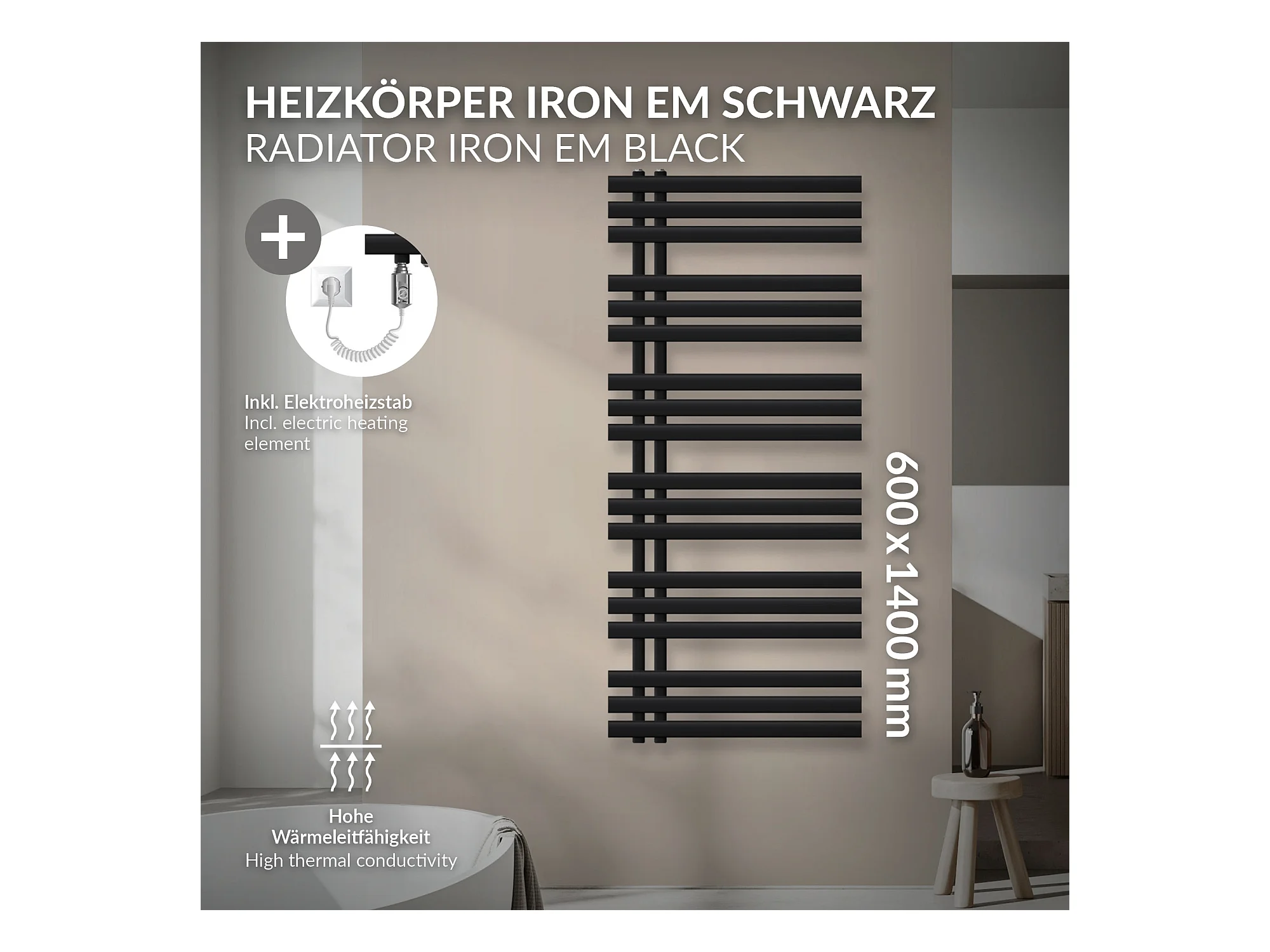 Radiateur design Iron EM noir mat en acier 60x140 cm avec tige chauffante 1200W