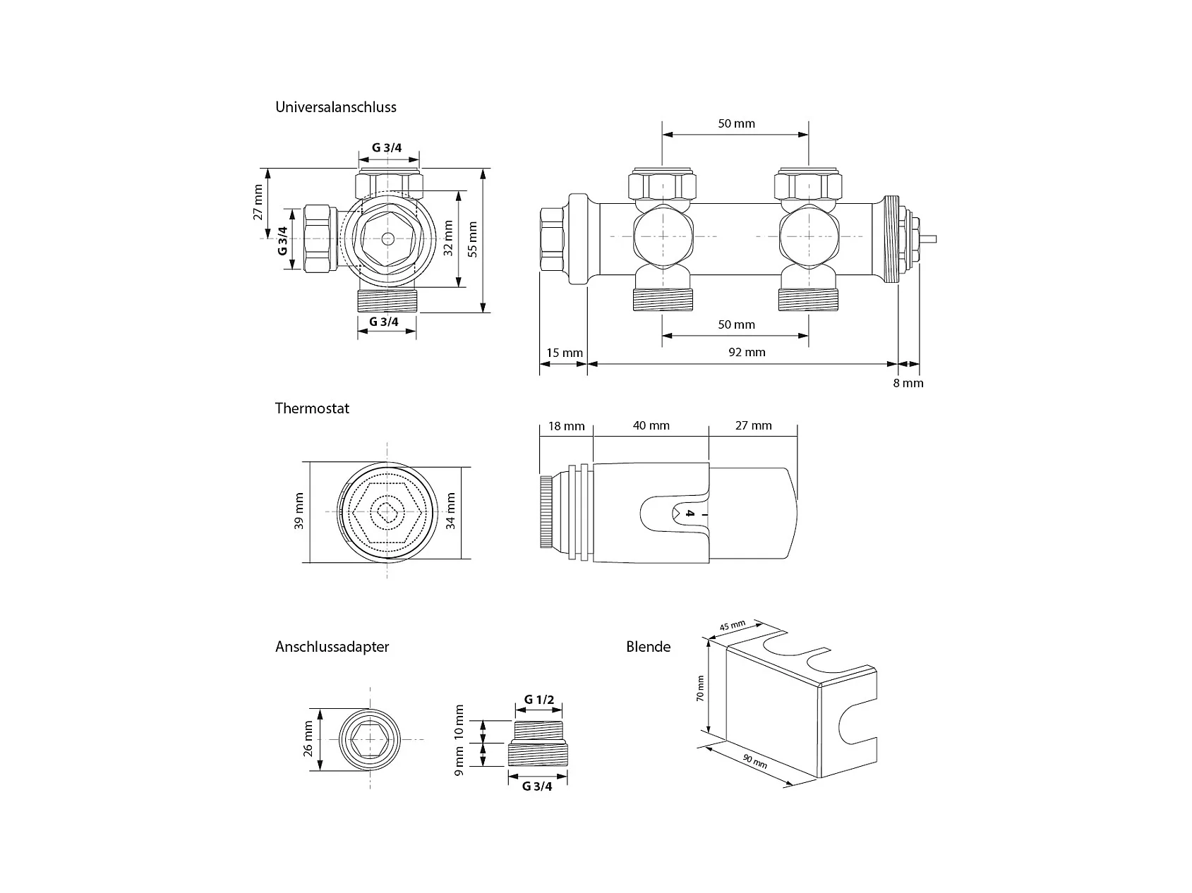 Radiateur avec Élément Chauffant Électrique 900W, 750 x 1200 mm, Blanc, Connexion Latéral