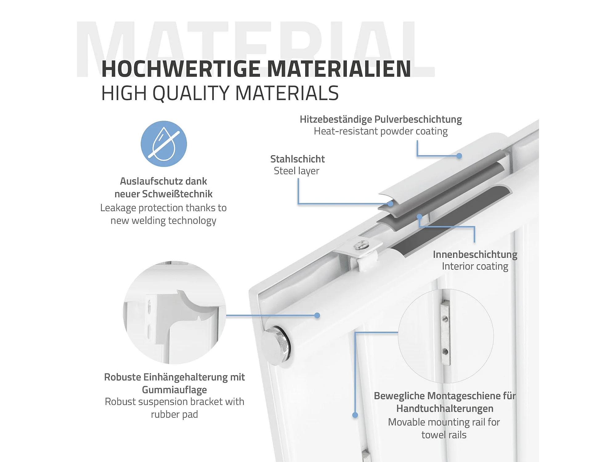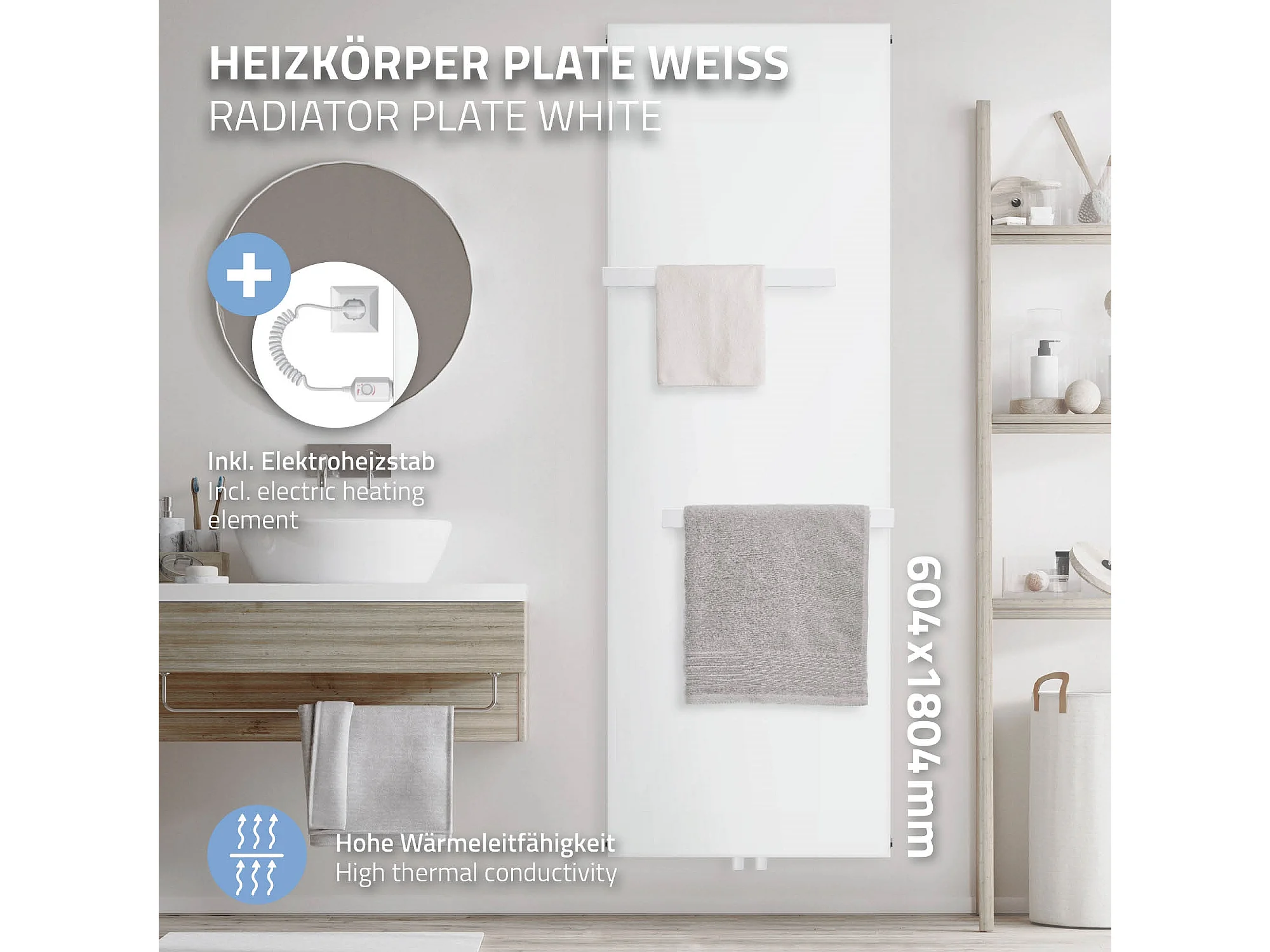 Radiateur électrique blanc élément chauffant 1200W 2 porte-serviettes 604x1800mm