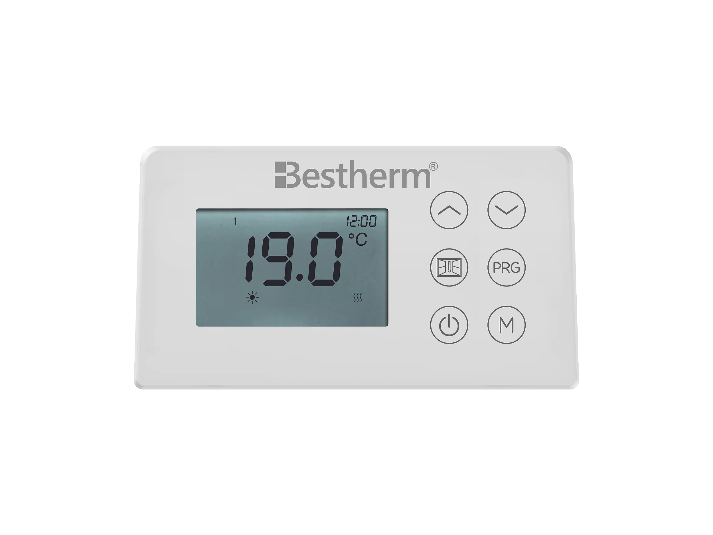 Radiateur électrique fixe à inertie sèche céramique façade en verre 1000W Bestherm IRIS horizontal blanc