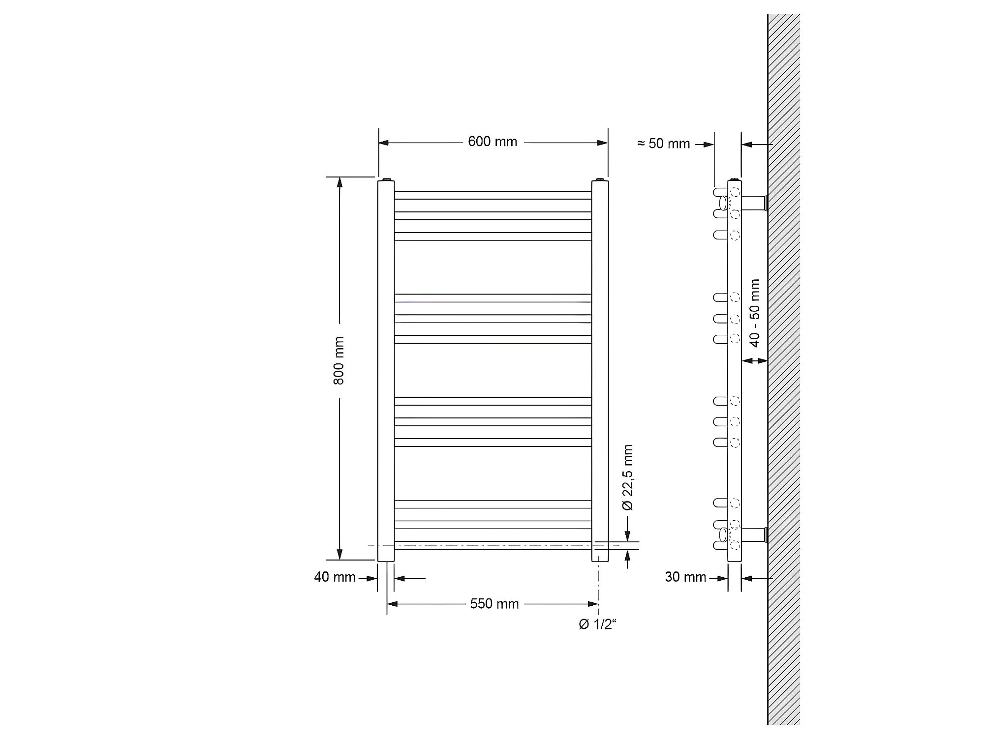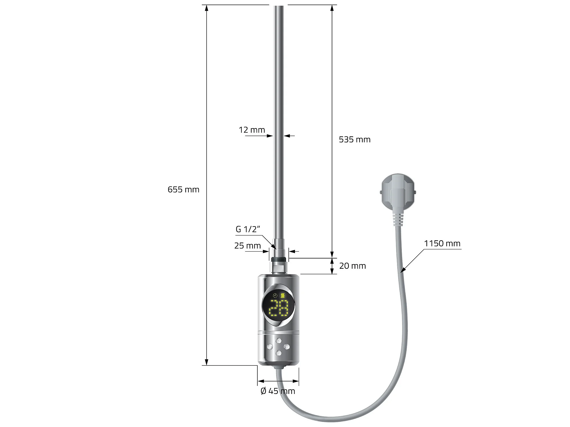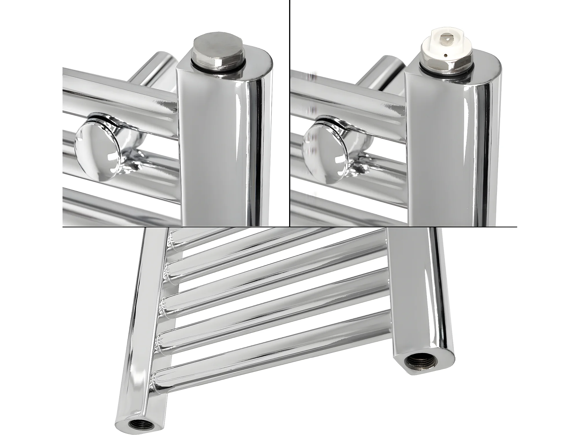 Radiateur électrique pour salle de bain Sahara 600x800 mm chromé raccord latéral courbé & thermoplongeur 600W