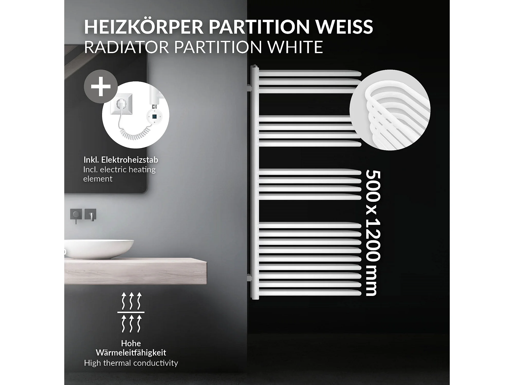 Radiateur mural blanc 50x120 cm + résistance 900W thermostat affichage digital
