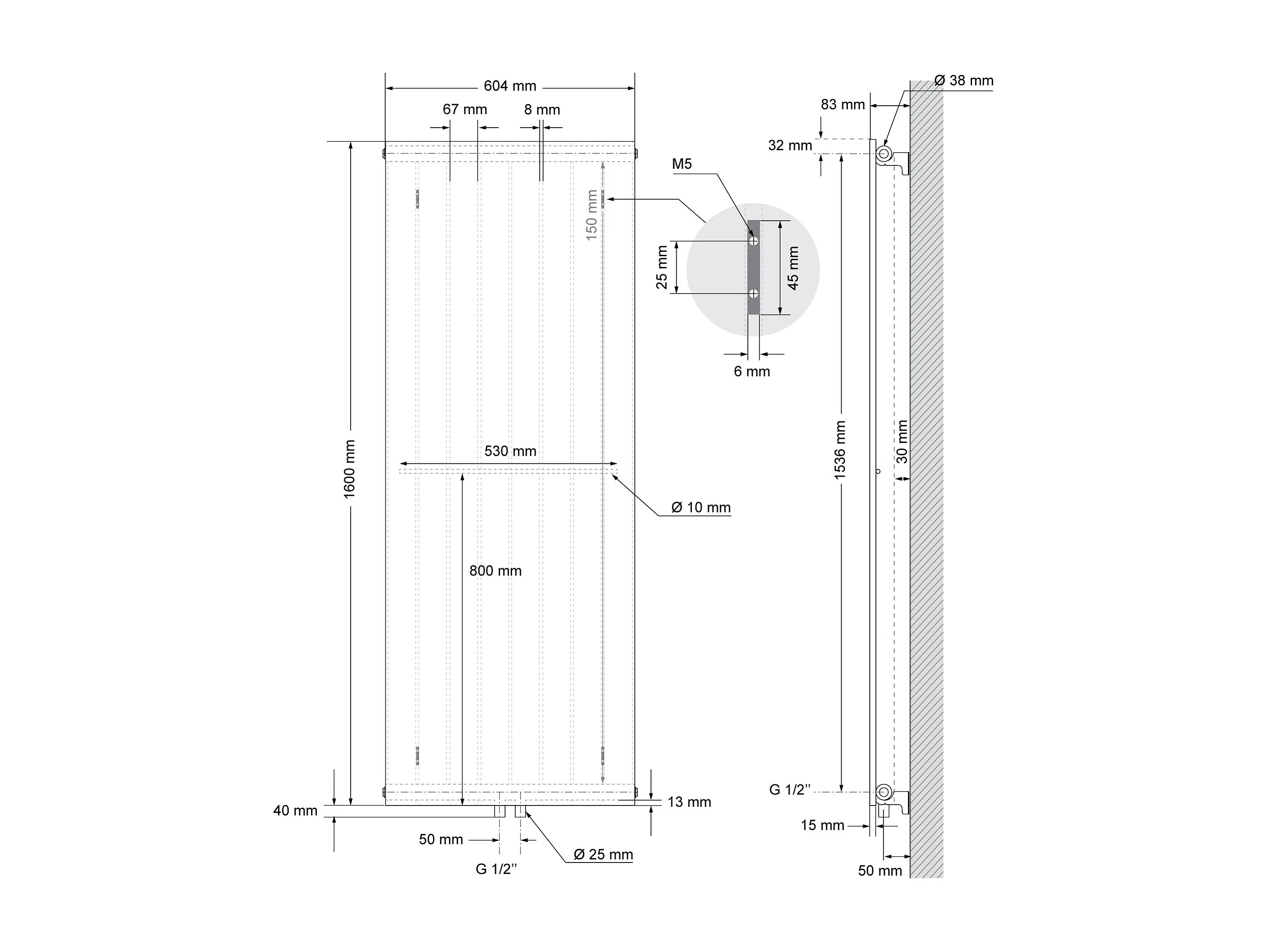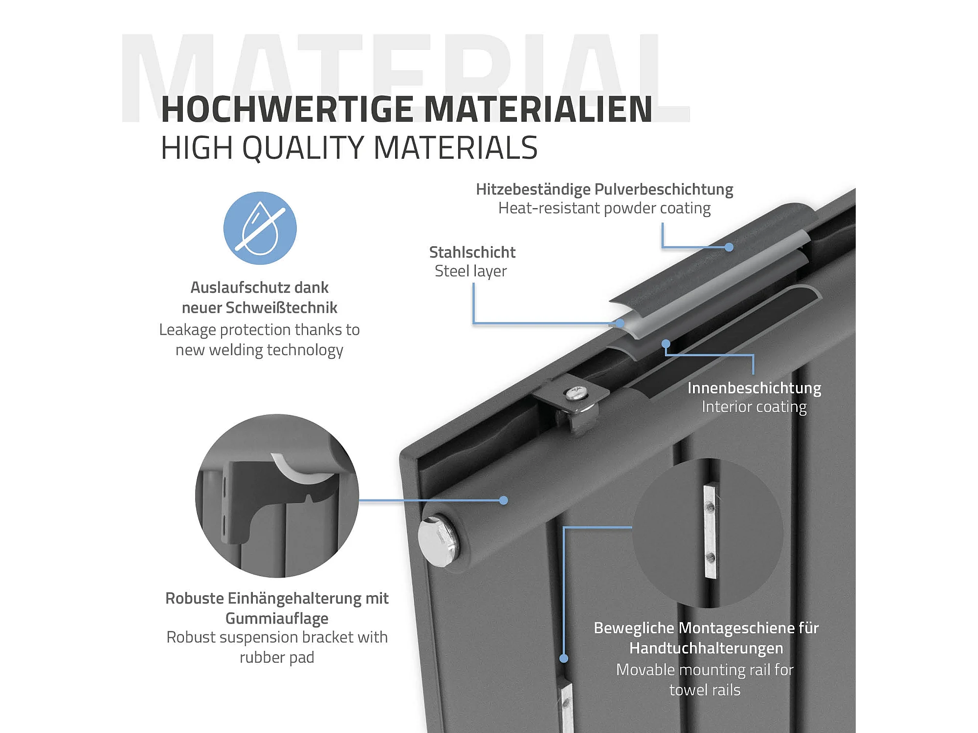 Radiateur plan avec 3 porte-serviettes Radiateur design 604x1600mm Anthracite