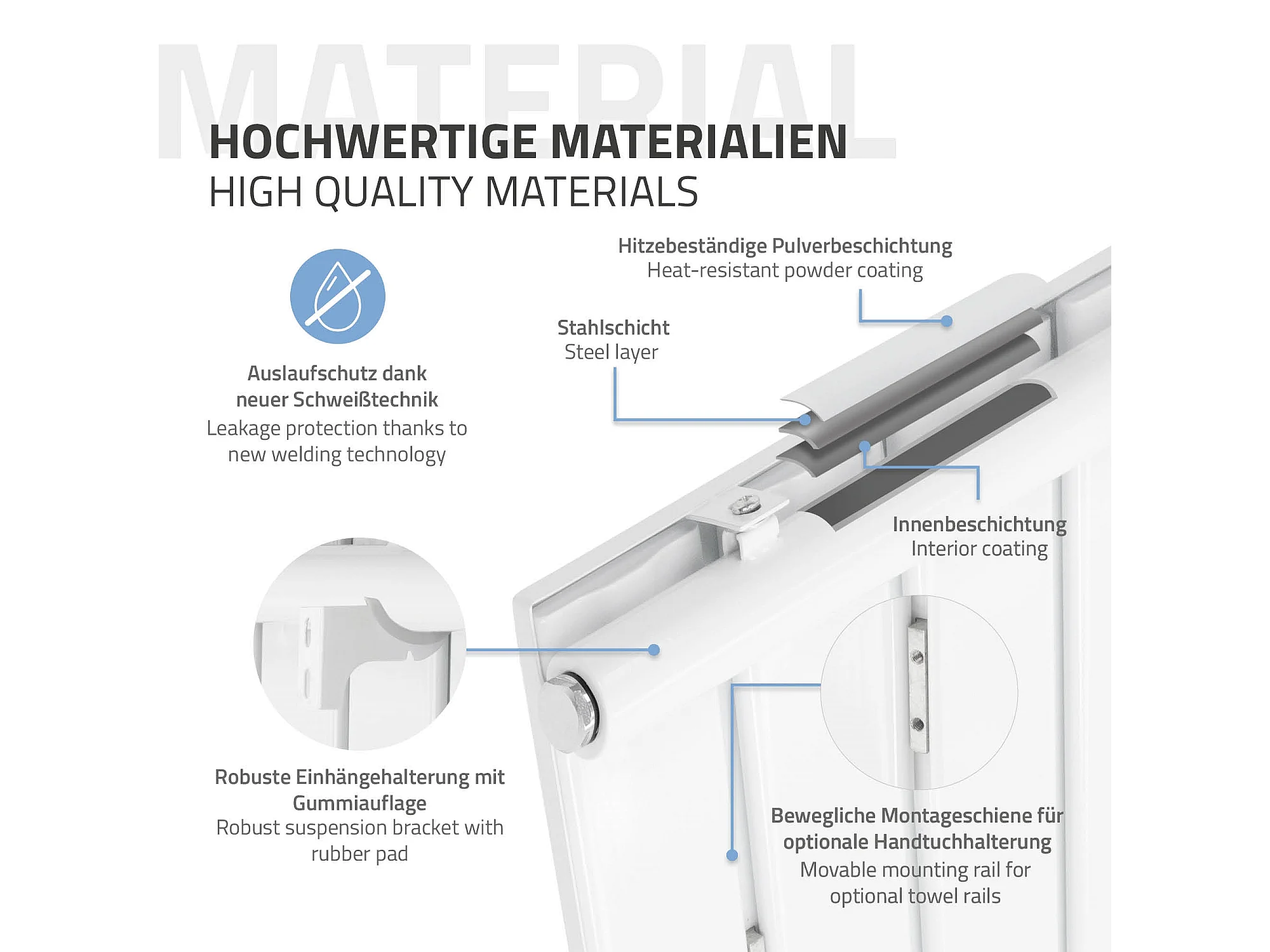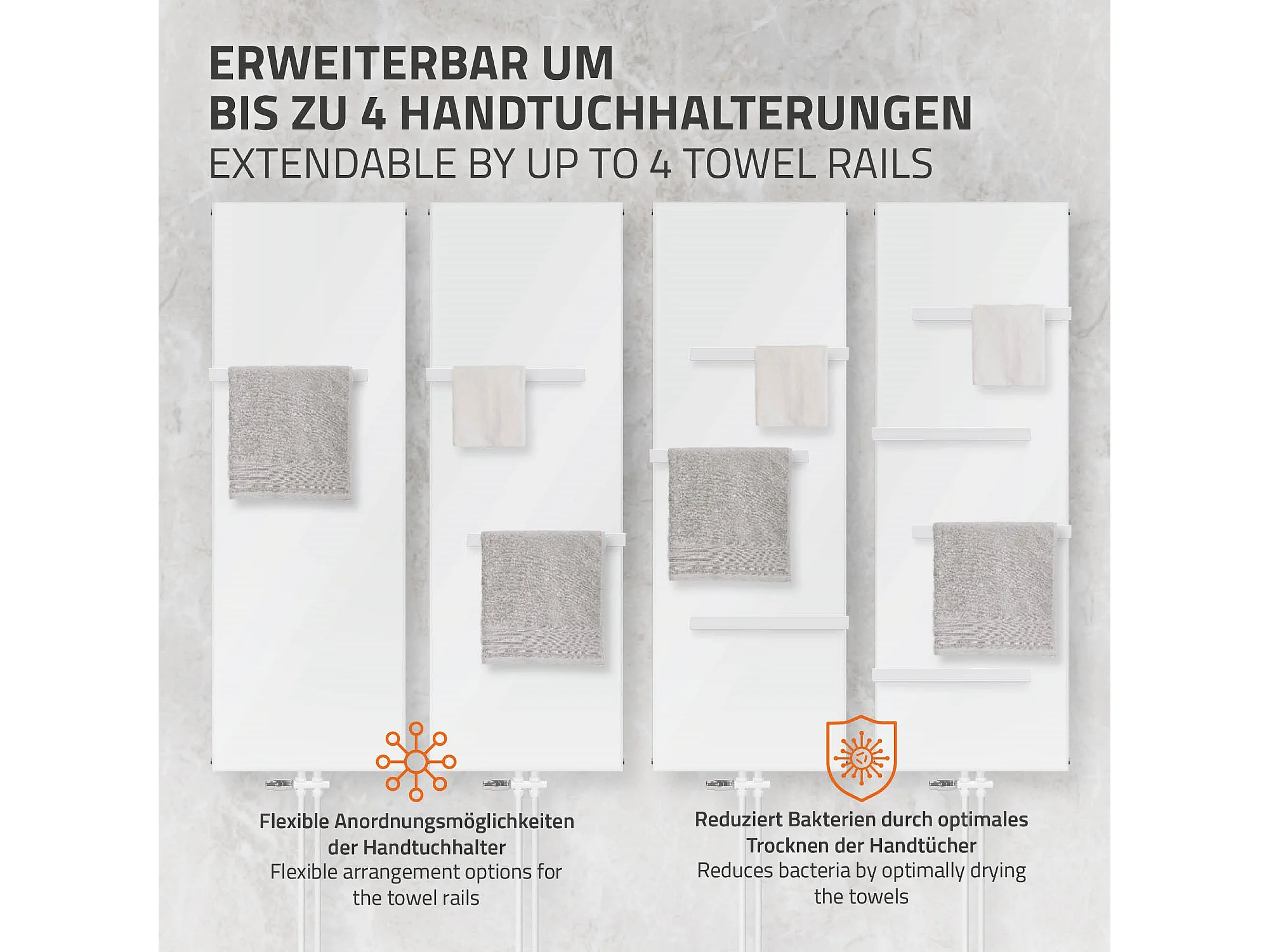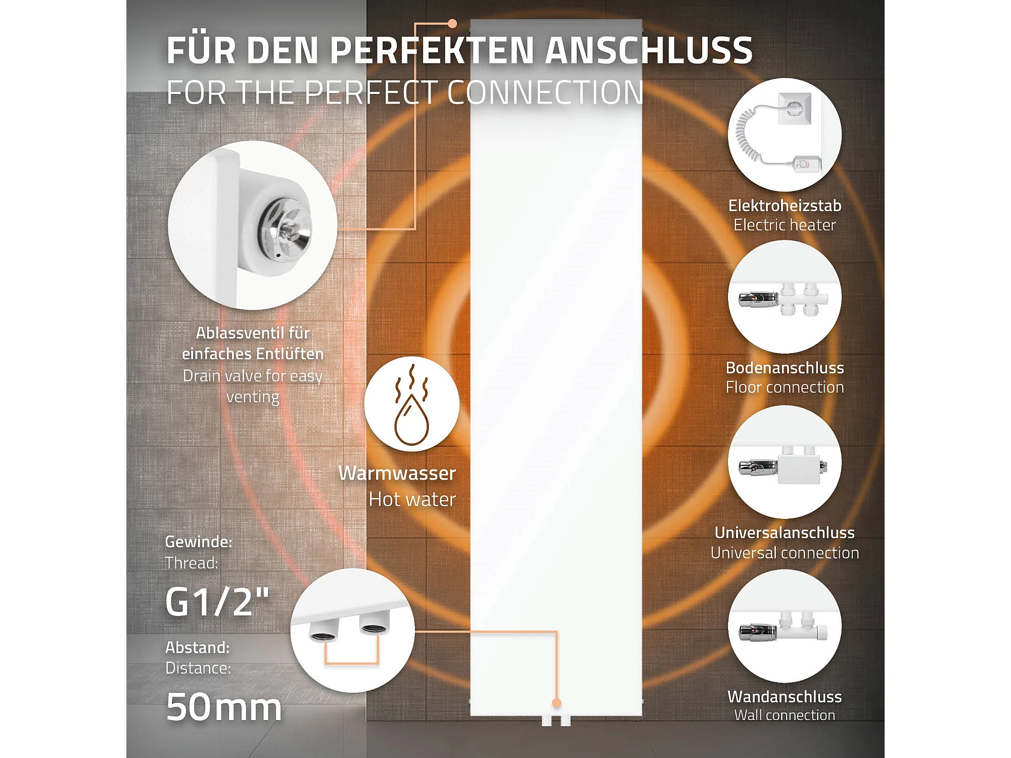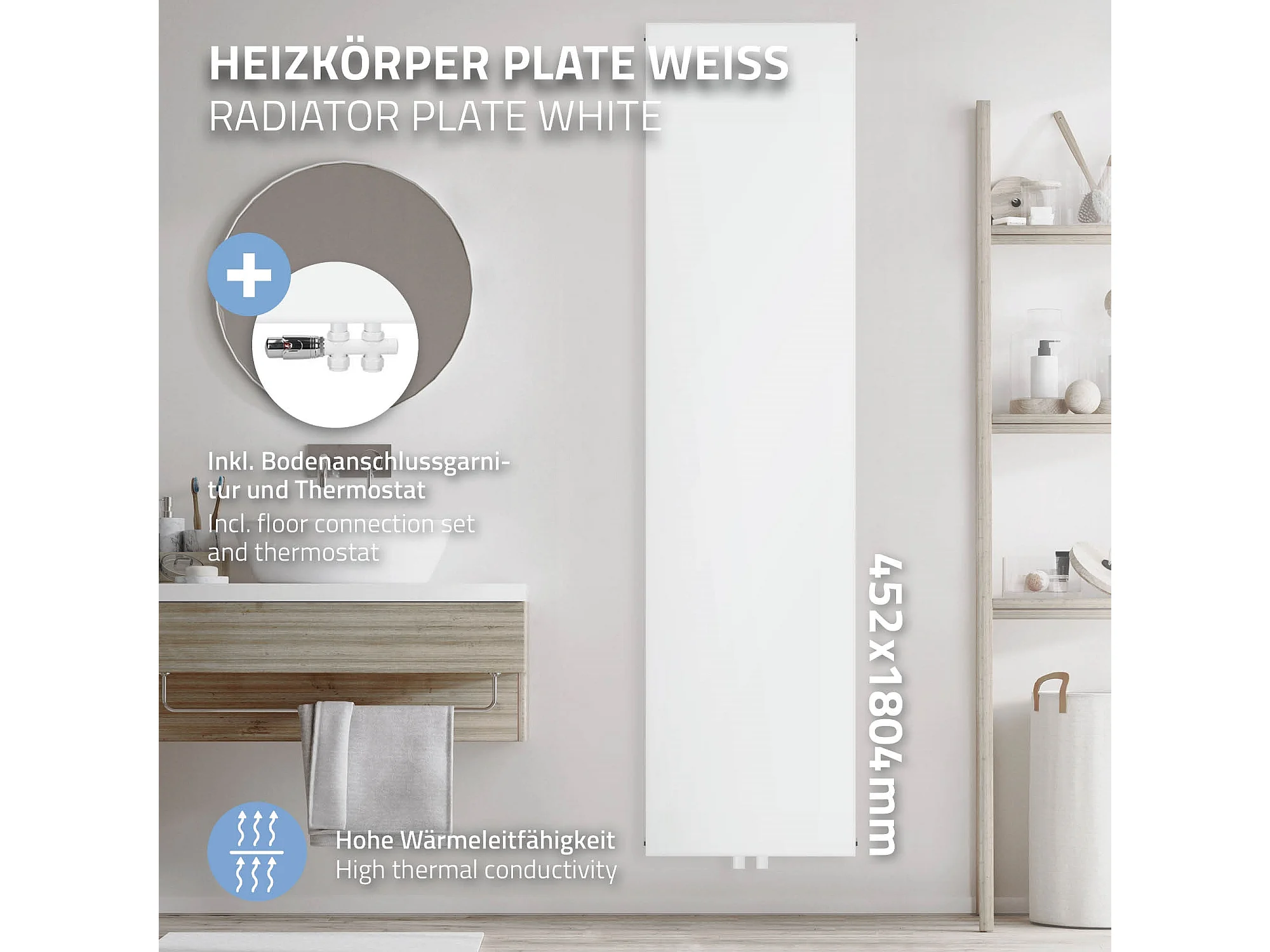 Radiateur plat moderne blanc salle de bain 452x1800 mm raccord central au sol