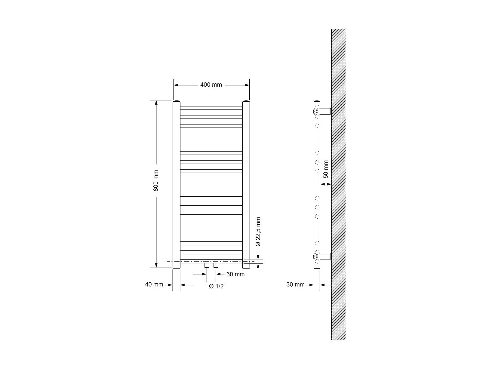 Radiateur sèche-serviette salle de bain acier chrome connexion central 40x80 cm