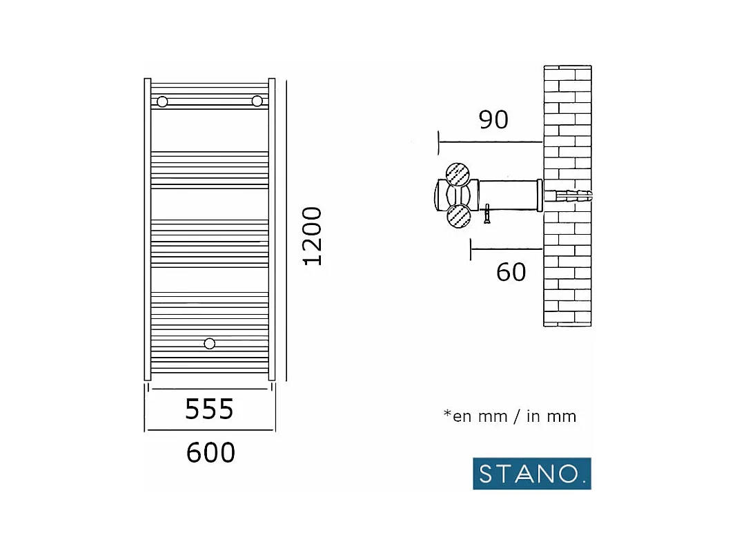 Radiateur sèche-serviettes eau chaude CODA 120 x 60 cm blanc