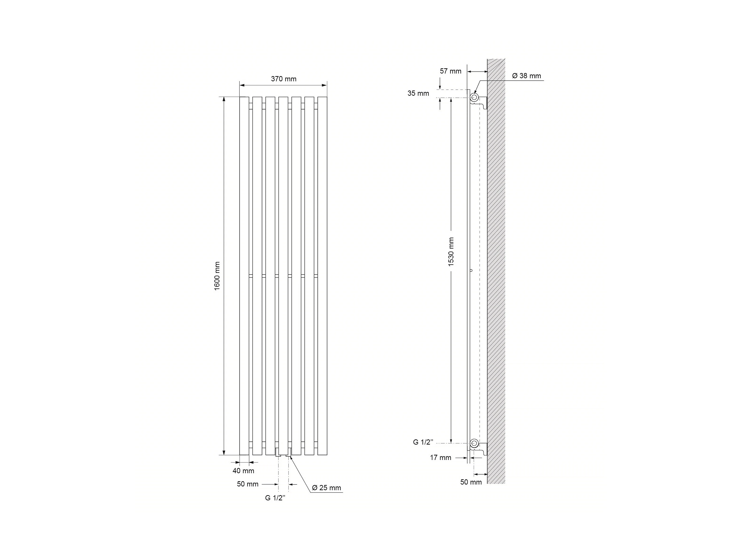 Radiateur Stella à panneaux anthracite 1600x370 mm raccord central salle de bain
