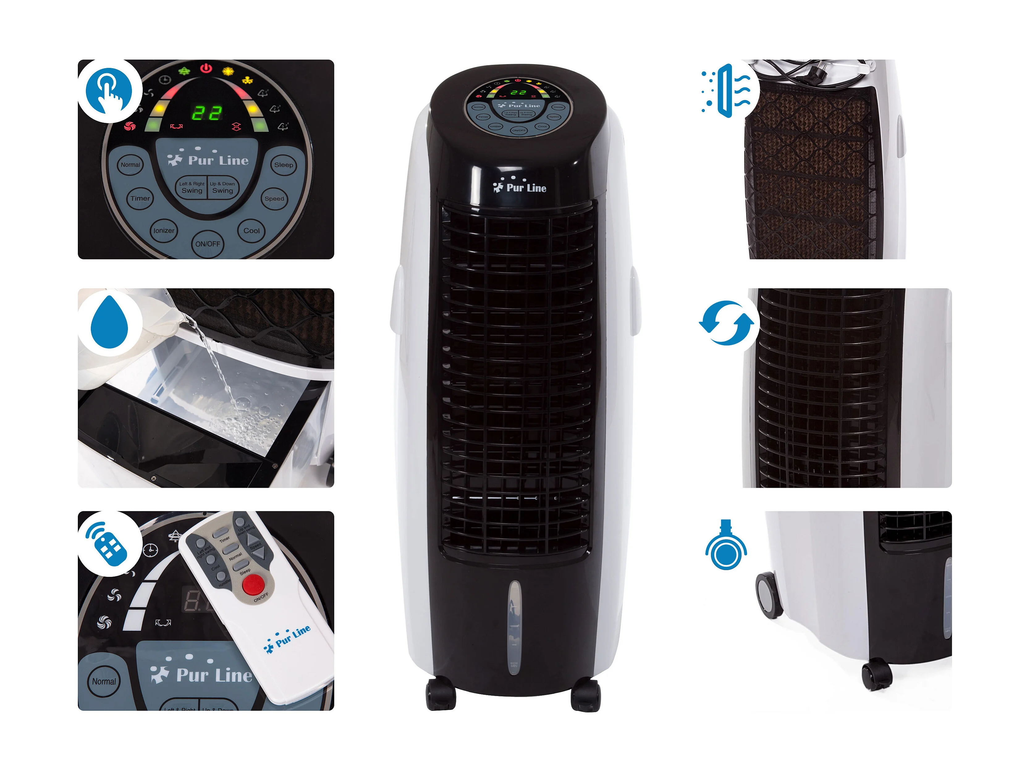 Rafraichisseur d'air par évaporation à débit élevé minuterie et 6 vitesses