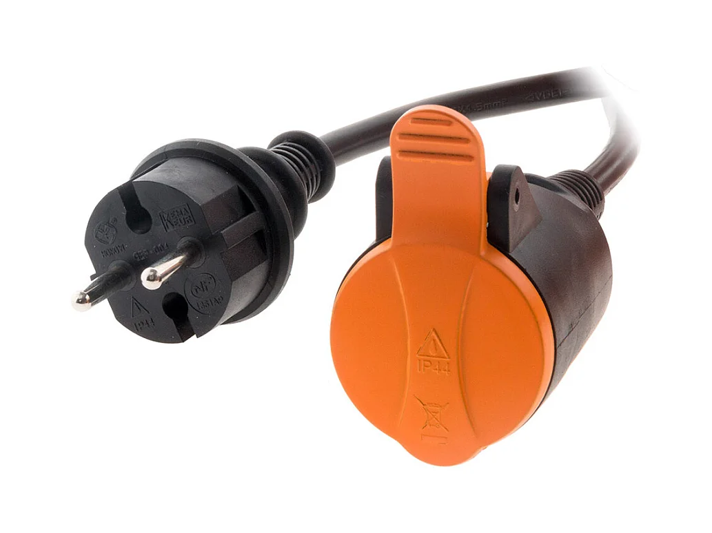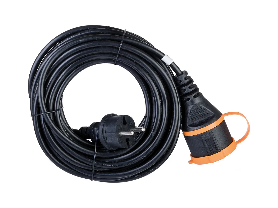 Rallonge étanche 2P H05VV-F 2x1,5mm² 10m avec clip de fixation - Orange - Zenitech
