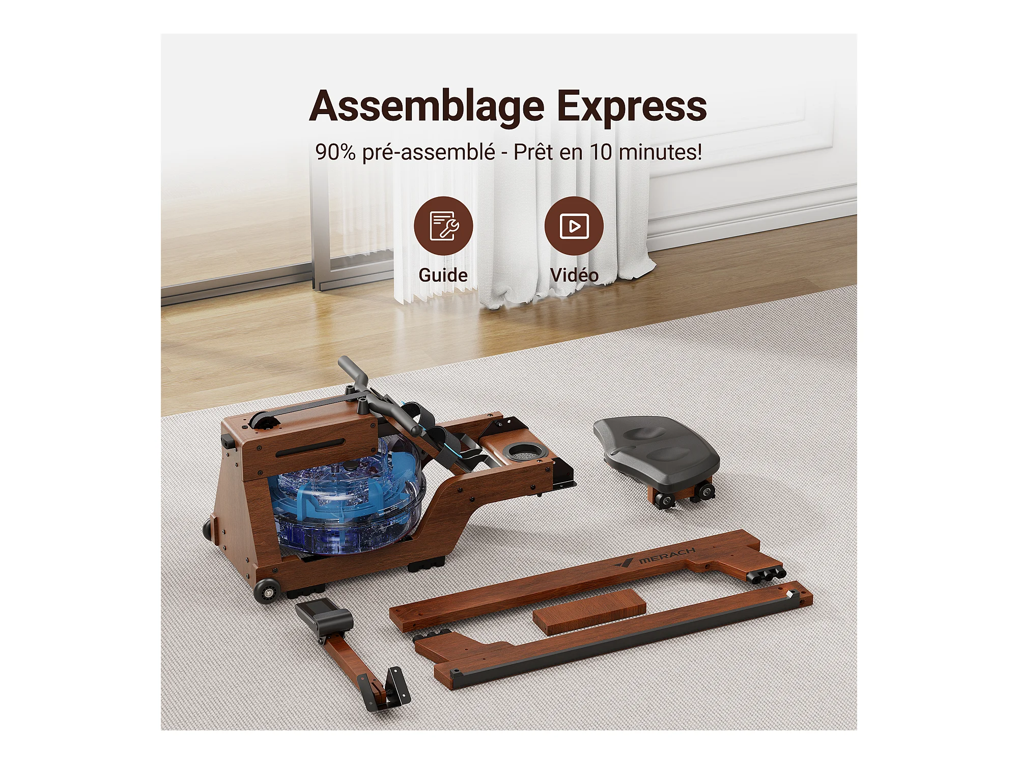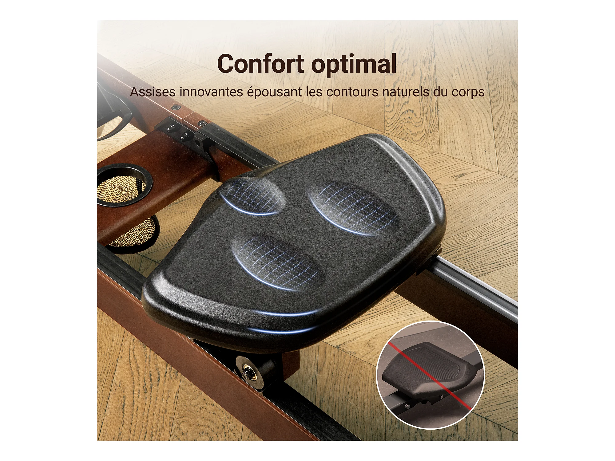 Rameur à eau MERACH, 22 L, 6 repères de remplissage, Bluetooth, Connectivité APP, Ecran LCD, Max 150 kg, Bois Massif foncé