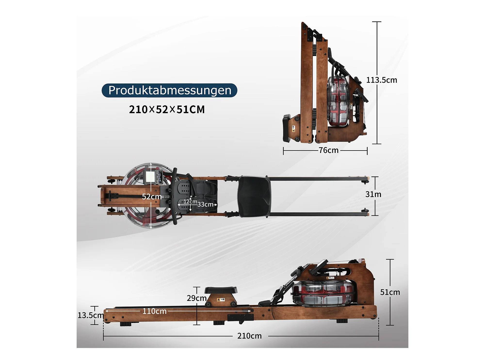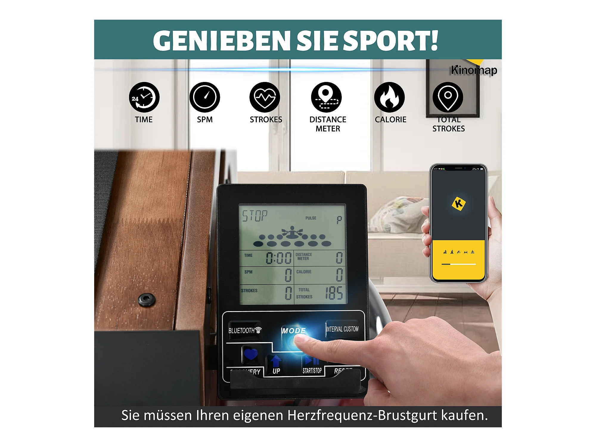 Rameur pliable Résistant à l'eau Application Kinomap Fitness à domicile en intérieur - Marron