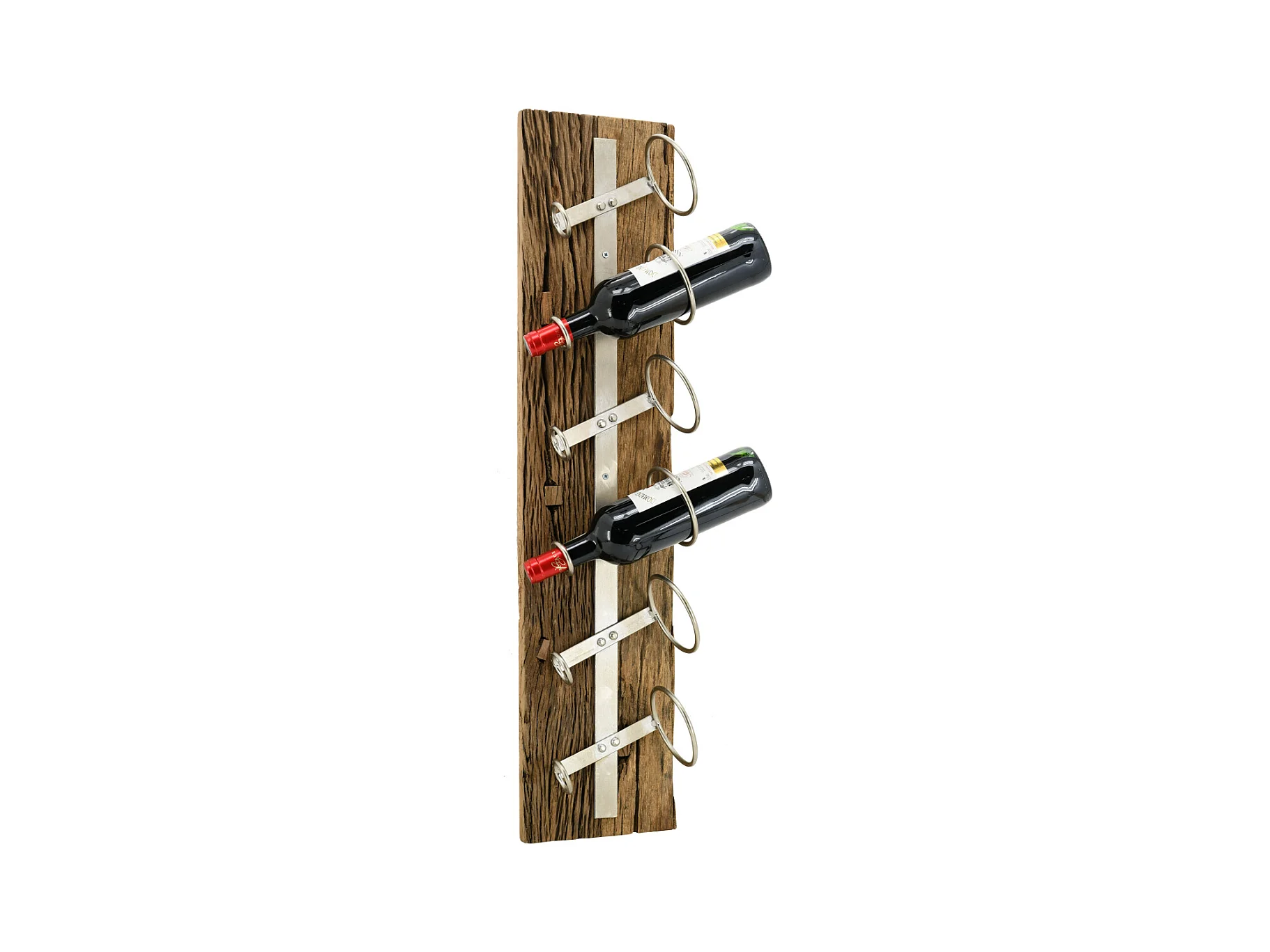 Range-bouteilles mural en bois recyclé et métal vieilli