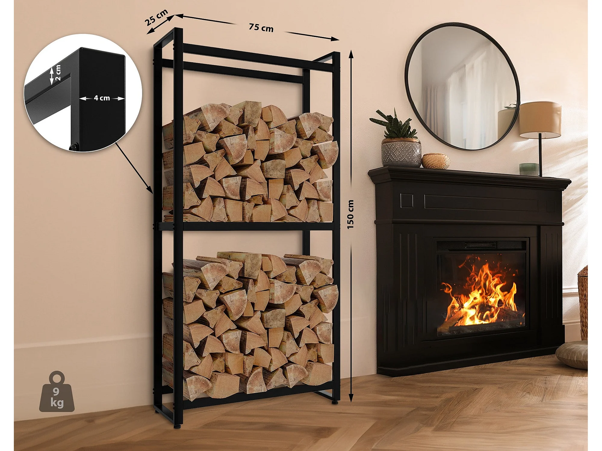 Range-bûches 2 niveaux étagère métal marron 75 x 25 x 150 cm 10_0003575
