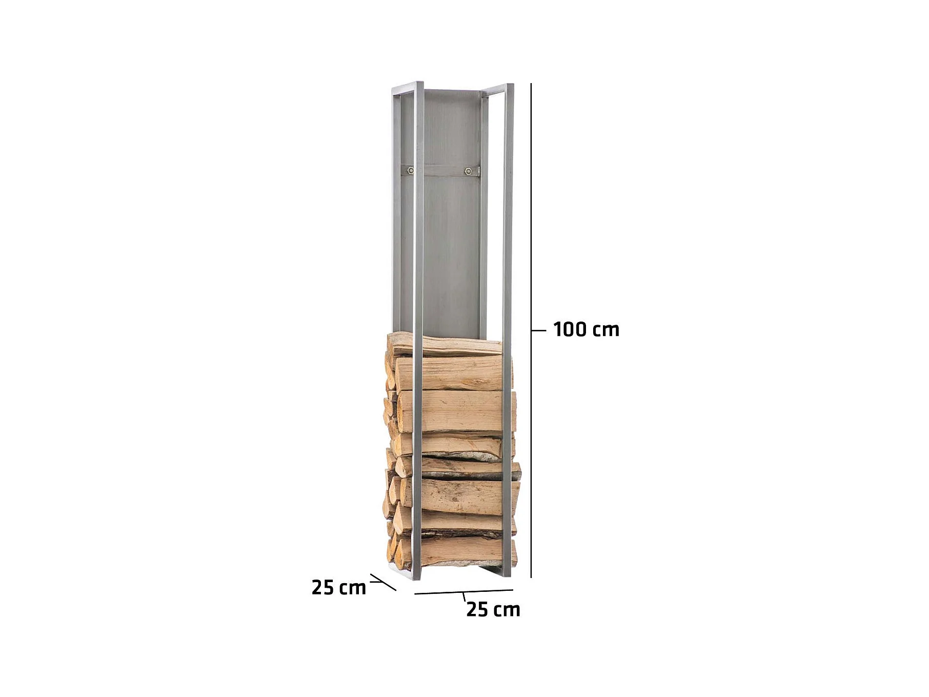 Range-bûches étagère en acier argenté 25 x 25 x 100 cm DEC10015